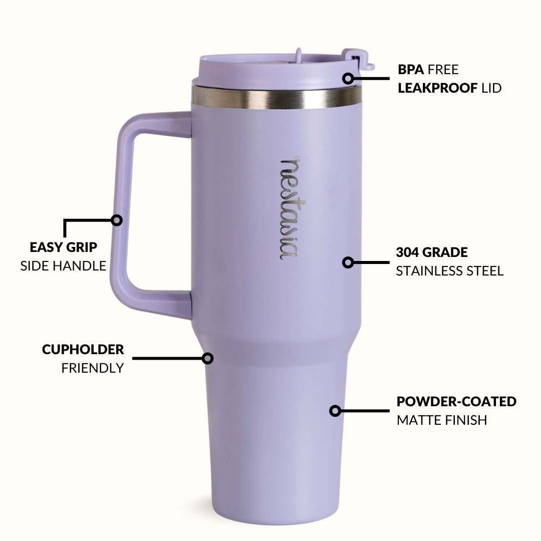 Light, dreamy, and quietly charming, this periwinkle purple insulated tumbler brings a soft pop of colour while keeping your hydration routine easy and relaxed.