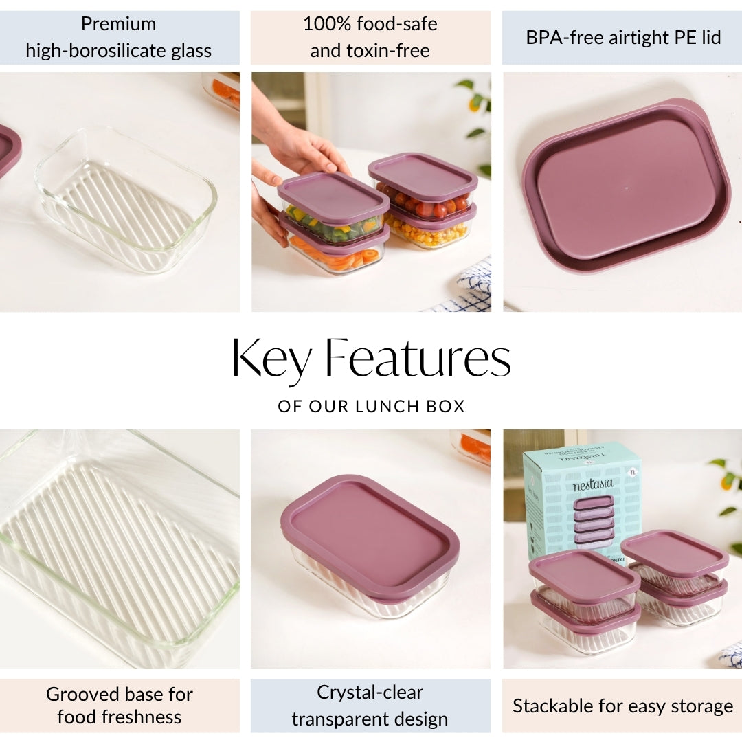 Declutter your kitchen with the Groovo glass container set, where smart storage meets sleek design. These containers come in a beautifully designed gift box.