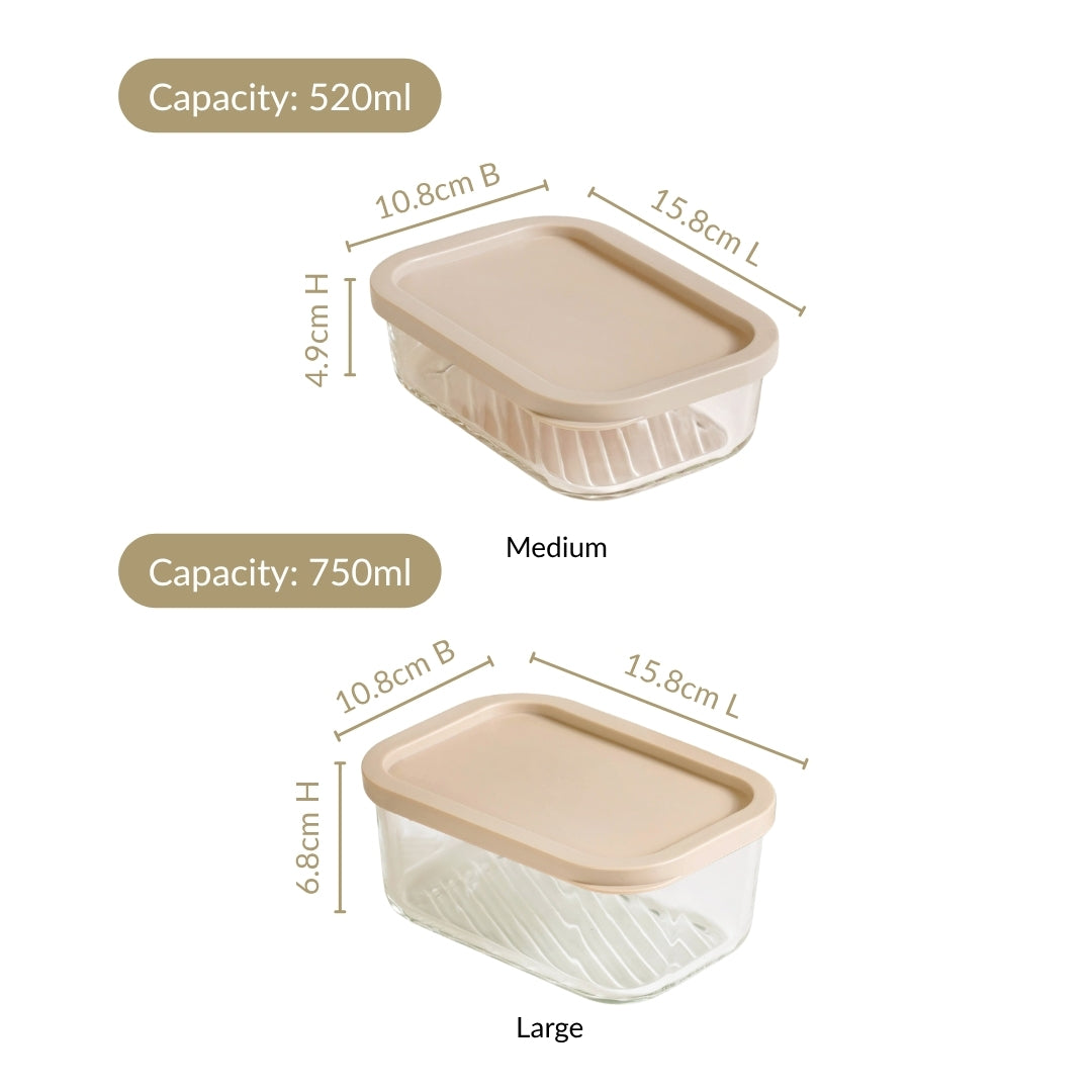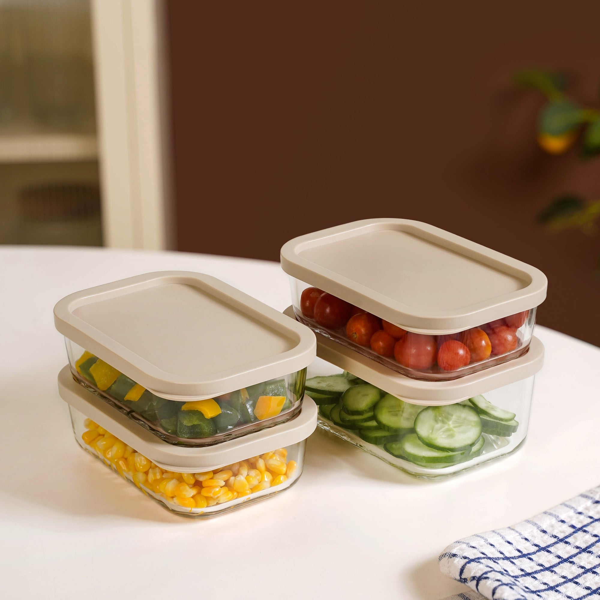 Design: This versatile collection includes three 520ml medium and one 750ml large food storage containers, making it ideal for meal prepping, storing leftovers, or organising pantry staples. The clear glass bodies provide easy content visibility, while the minimalist design and secure silicone lids create a sleek, uniform look that stacks neatly and enhances any kitchen decor.