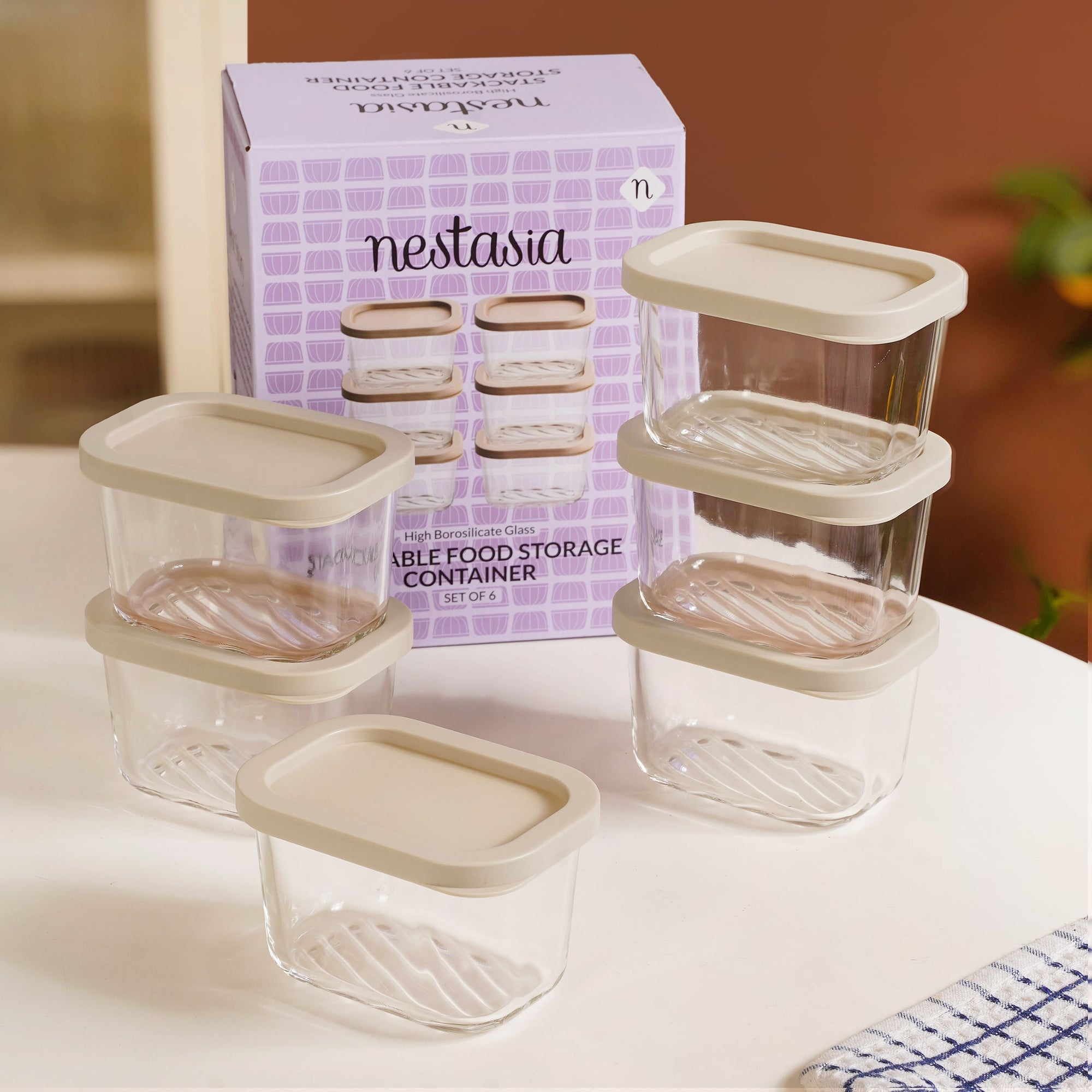 Groovo Stackable Food Storage Container Set Of 6 Beige 310ml