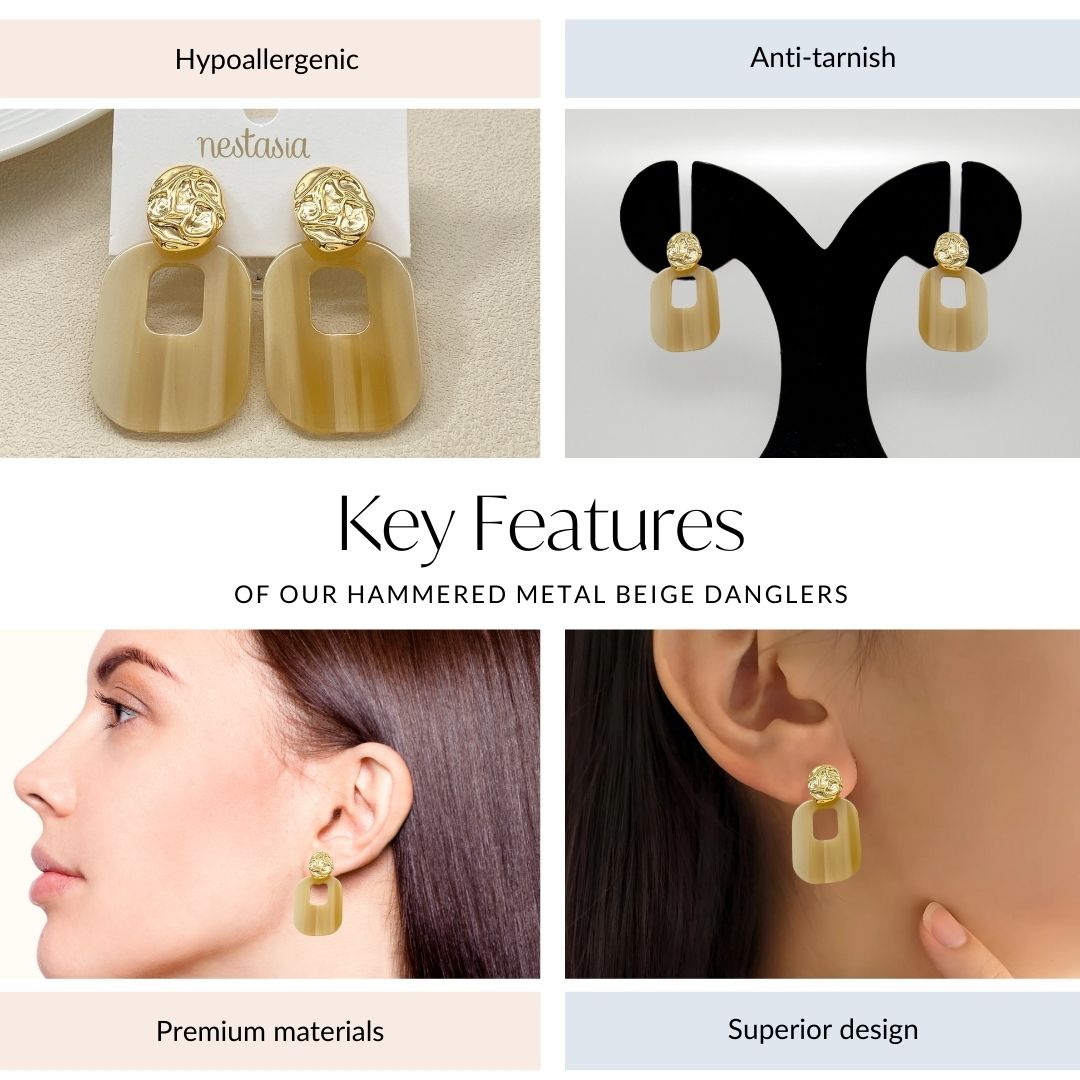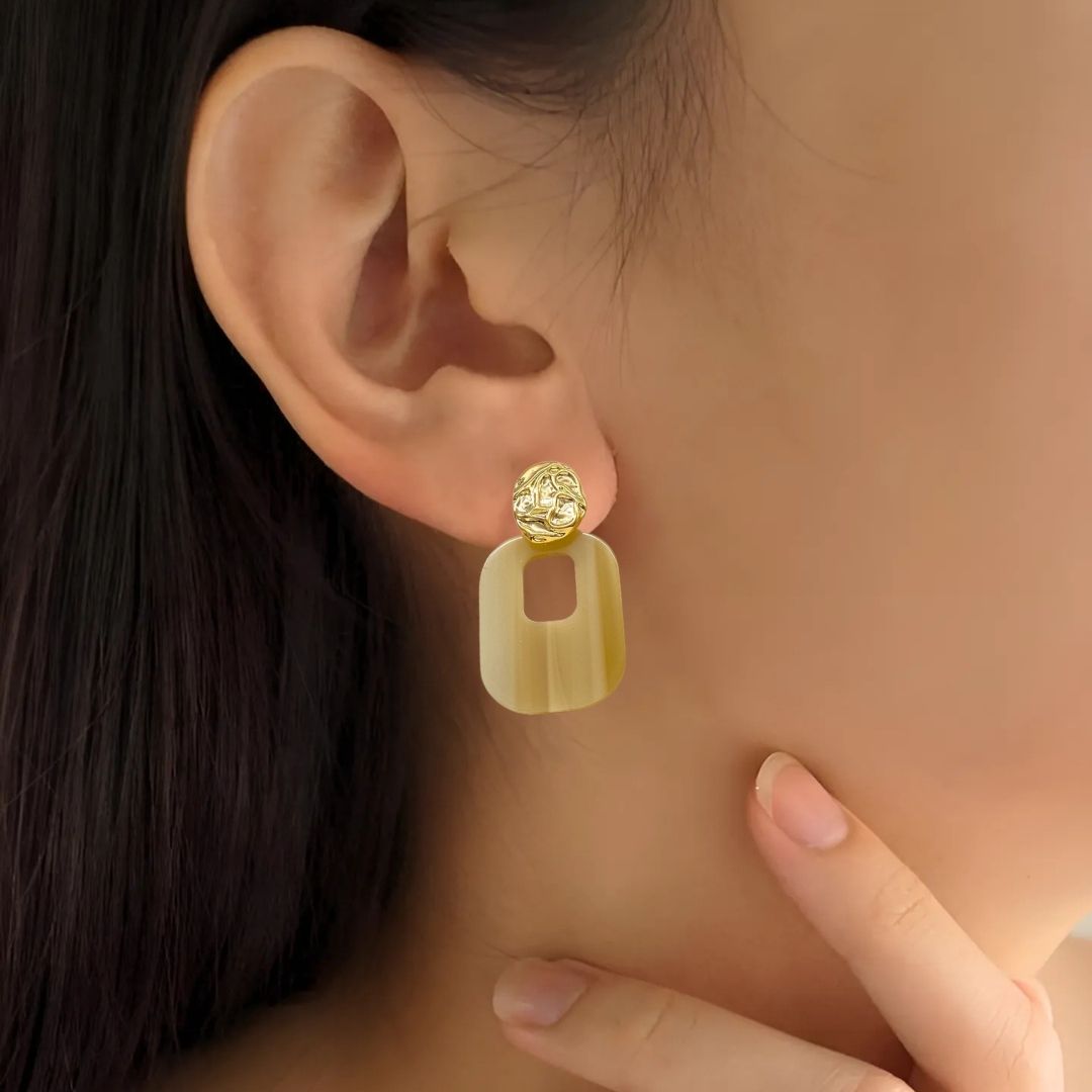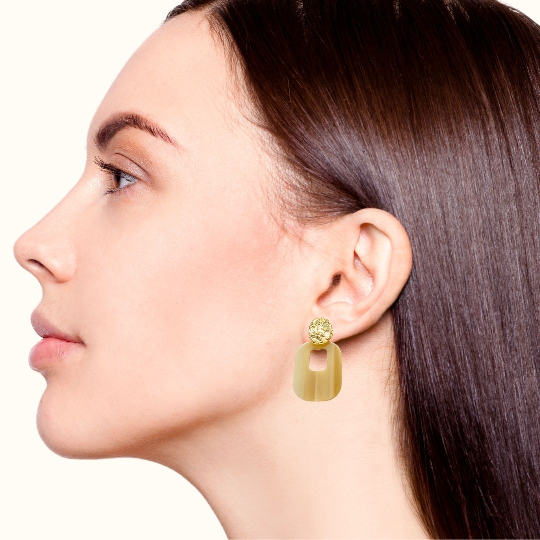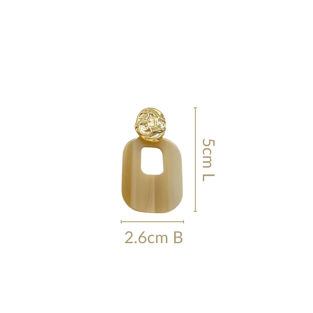 Nestyle: Style these earrings with a neutral-toned outfit and let the beige resin pop, adding a soft, sophisticated touch to your attire.