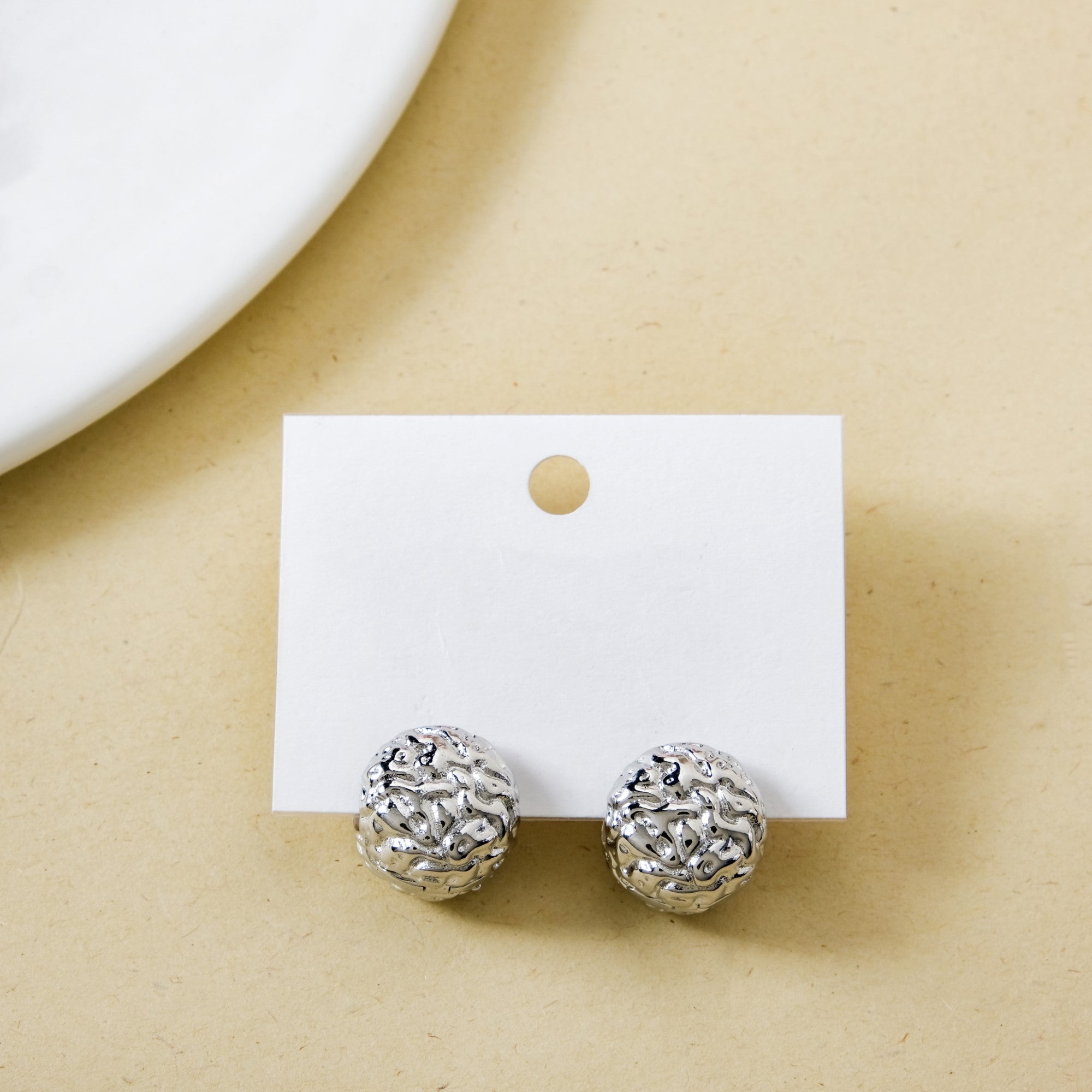 Hammered Metal Silver Huggie Earrings