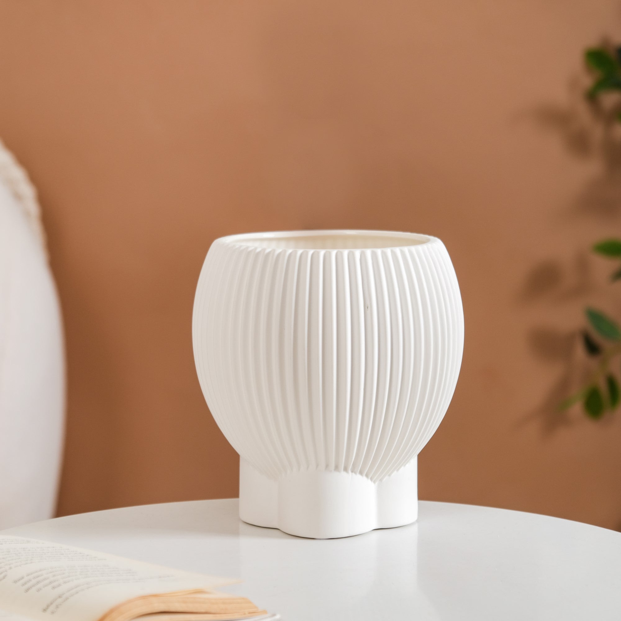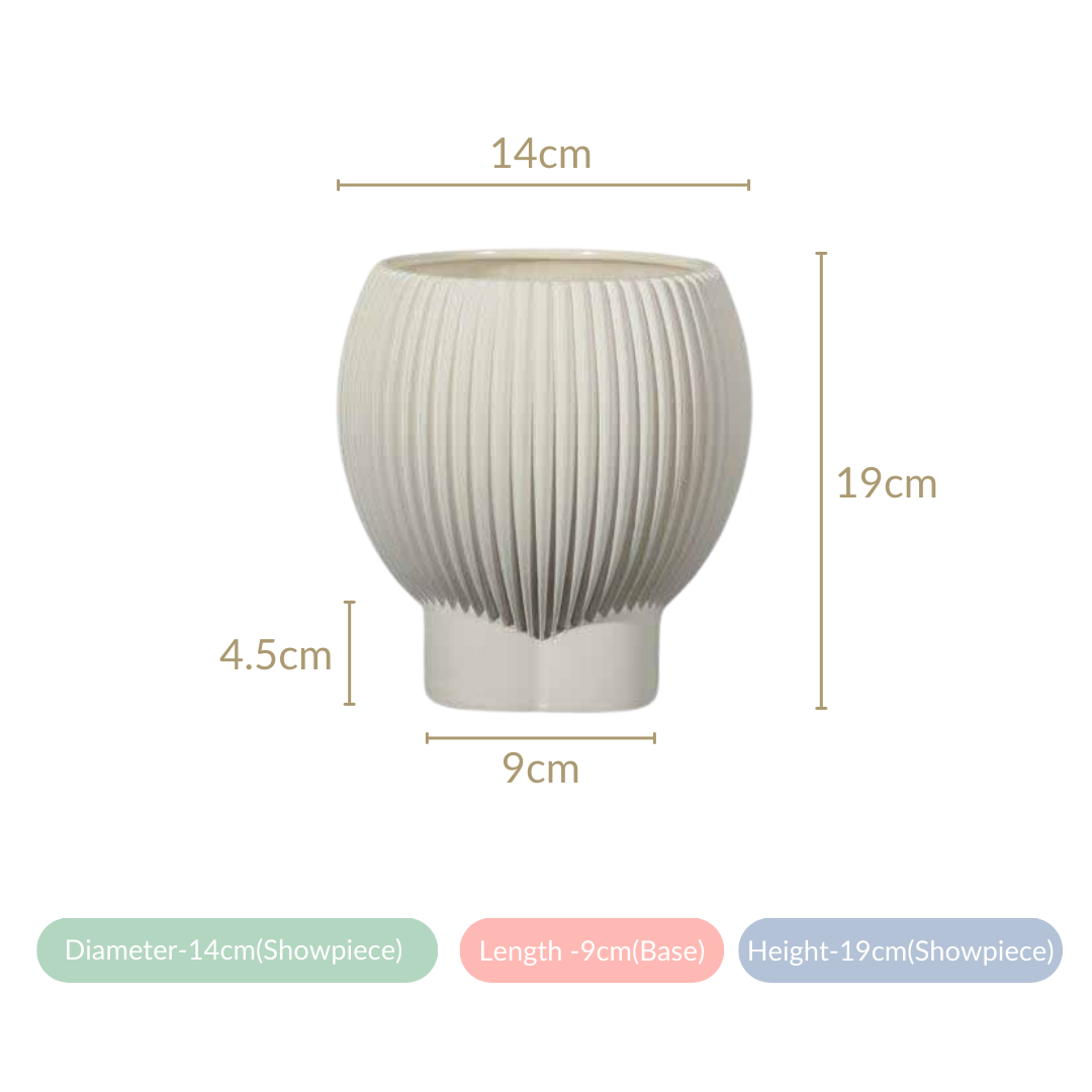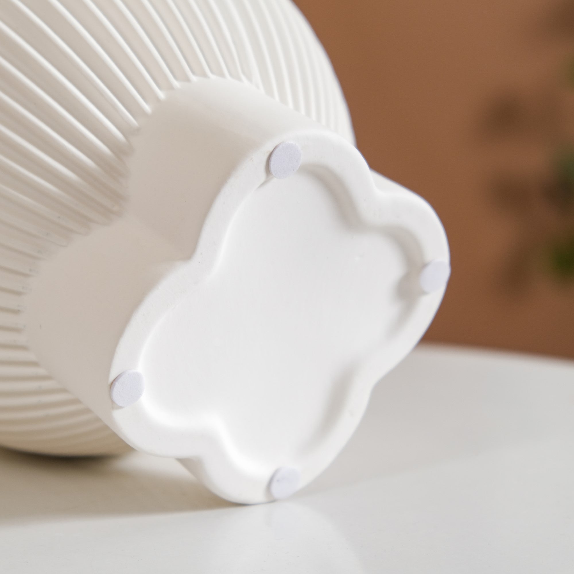 Introducing the epitome of refined elegance and craftsmanship – a vase that transcends the ordinary to become a true symbol of luxury living. Crafted from premium quality ceramic, this vase is a testament to enduring quality and timeless beauty. The ceramic flower vase has a unique shape that will easily complement your stunning designs. This textured ceramic vase has ridges that wrap around its surface, giving it a stylish appearance. The ribbed vase's sophisticated and elegant style will enhance the elegance of your floral design.
