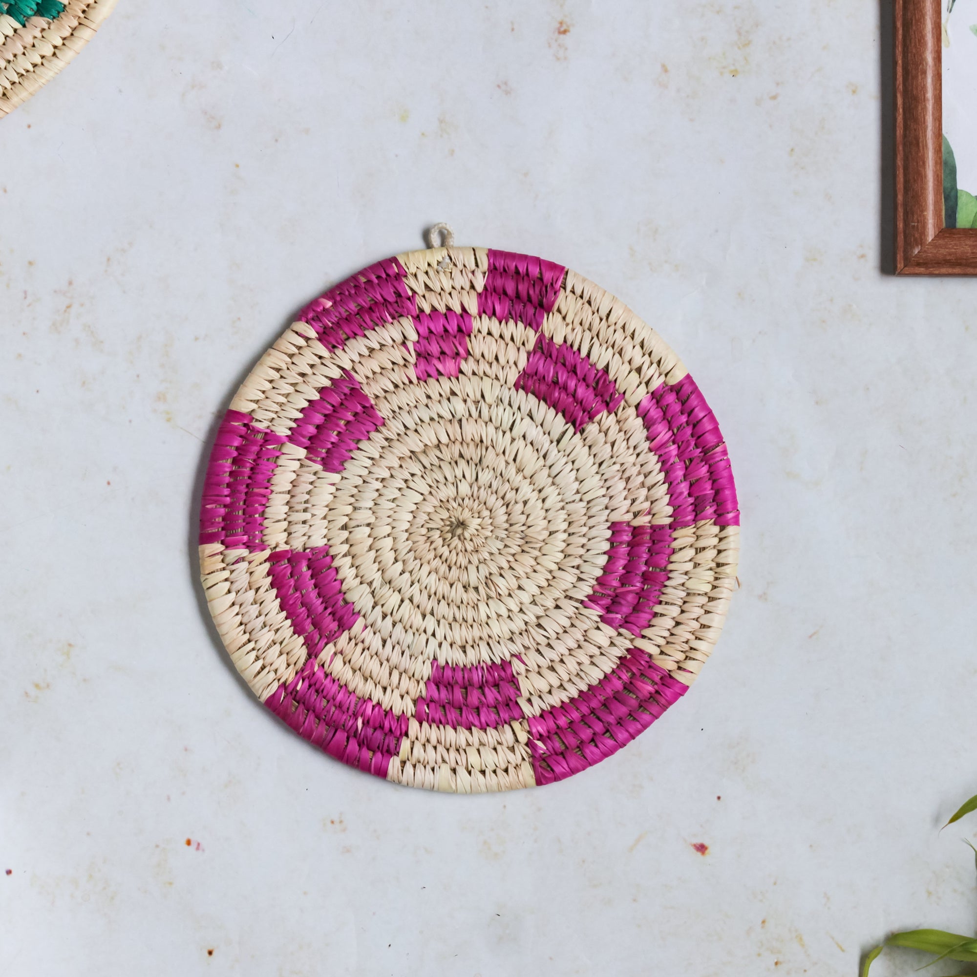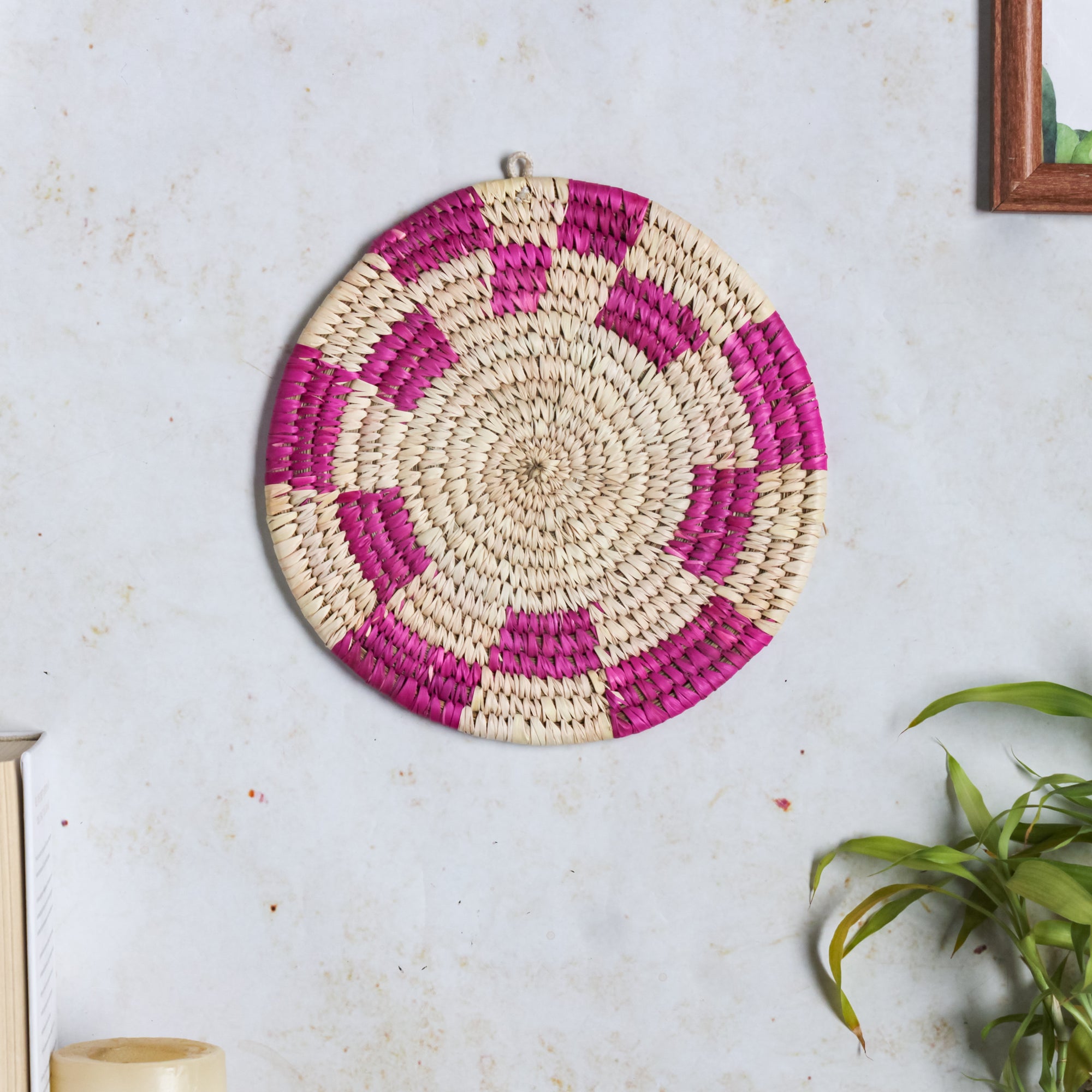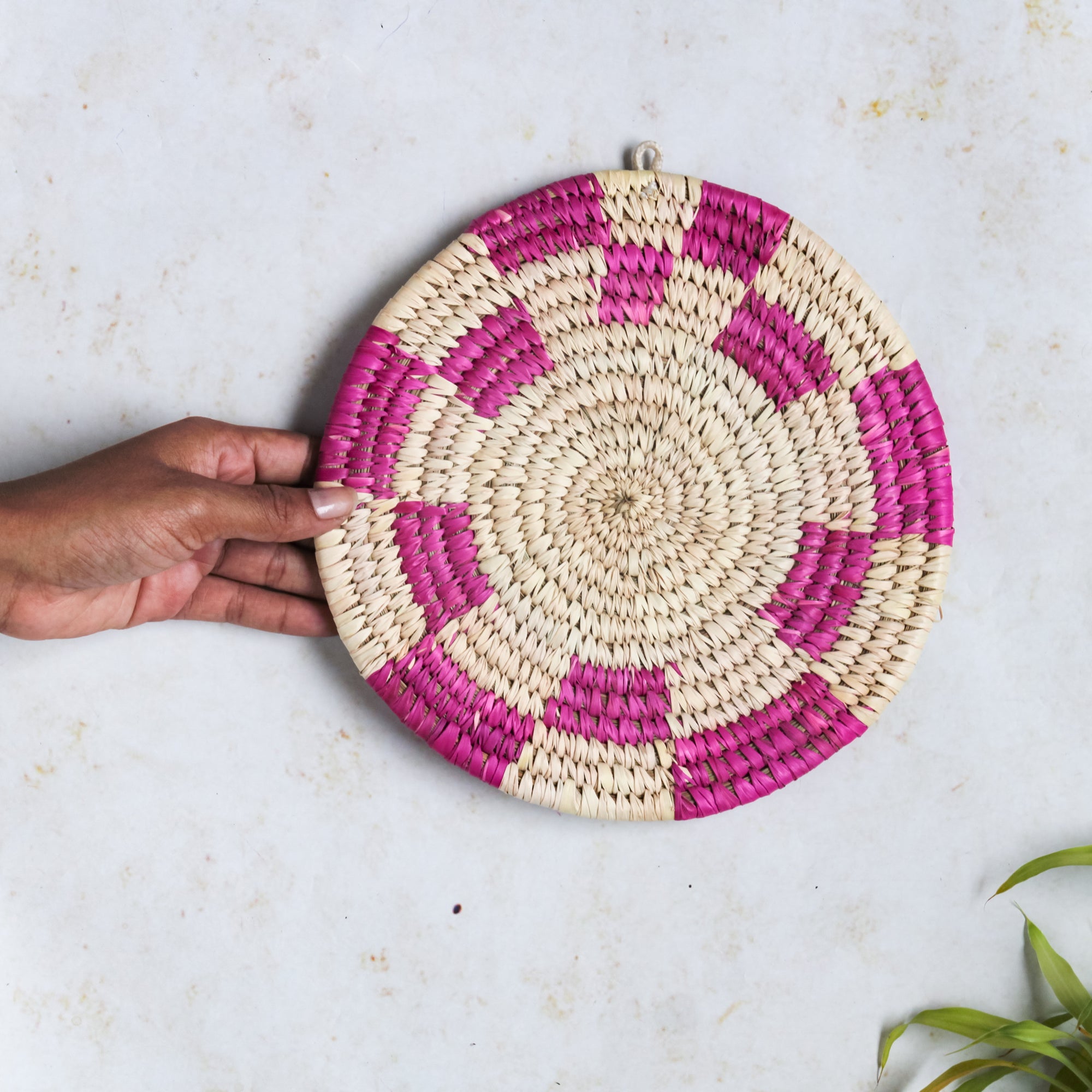 Sabai wall plate is naturally colored in a bright and vivid tone, creating a lively environment in any space it is placed in. Handcrafted and eco-friendly, the Sabai wall decoration can also be used as a heat resistant trivet or table mat in the dining area. The handwoven item is decorated with gorgeous bright pink patterns which stand out in any room setting. The handwoven natural item, which was handcrafted by local artisans with great care and attention to detail, has a traditional, boho chic feel to it and is durable and long lasting in nature.