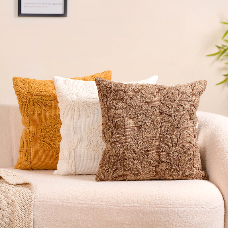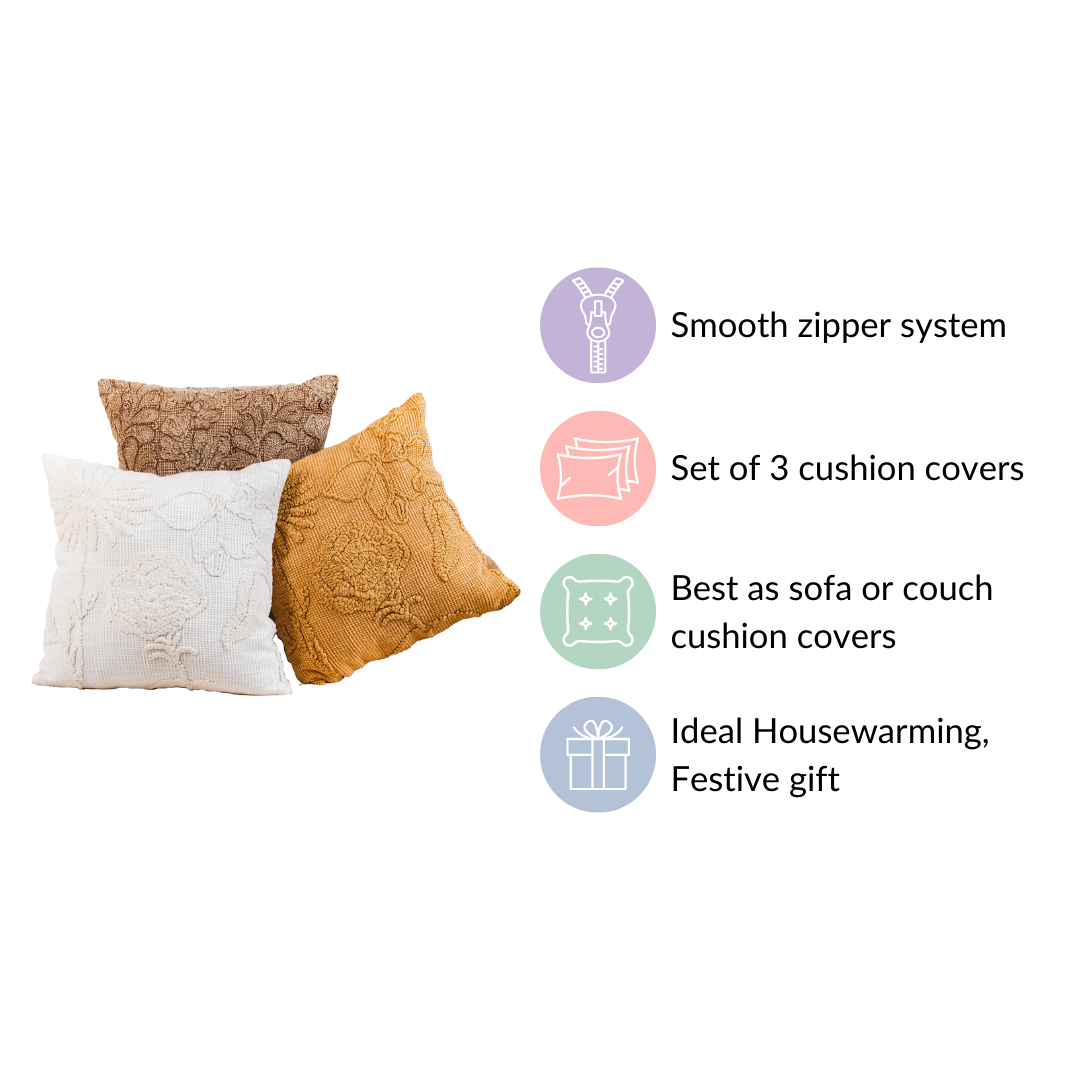 Designed specifically for sofas or couches, this set of 3 cushion covers adds an element of elegance and comfort to your seating arrangement. The 100% cotton fabric feels gentle against the skin, making your lounging experience delightful. Their concealed zipper ensures a sleek look, elevating the aesthetics of your living space. Plus, the embroidery detailing adds a touch of sophistication, making them the best choice for sofa or couch cushion covers.