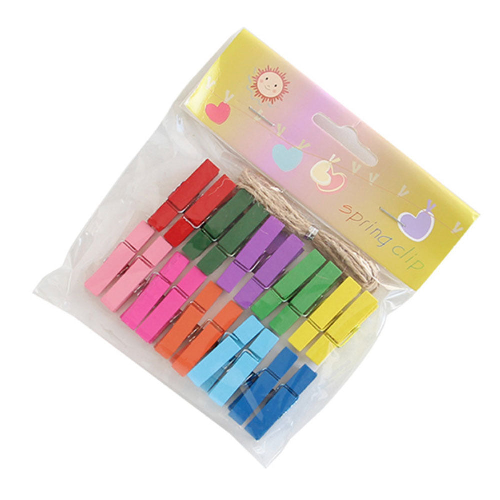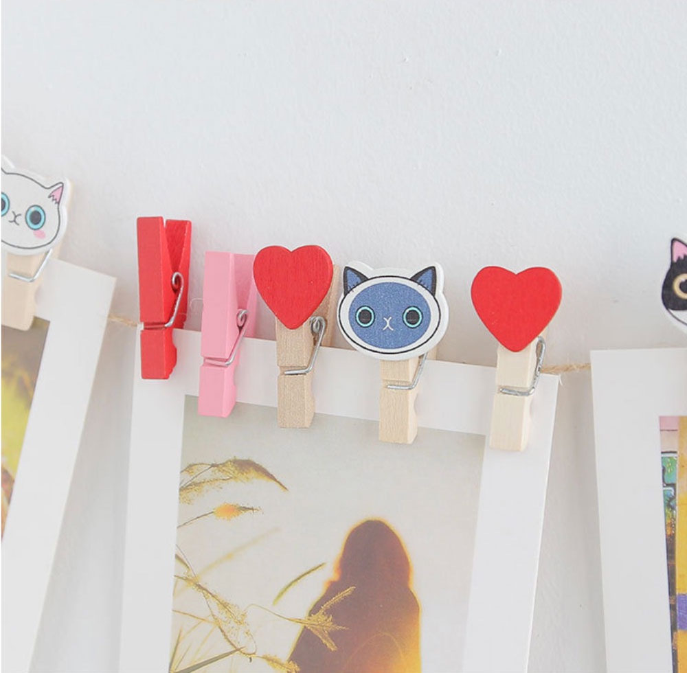 A vibrant set of wooden paper clips that can be used to hold papers or can be hung on a string to hold the favourite polaroid pictures. The clips can be used for creating a feature wall.