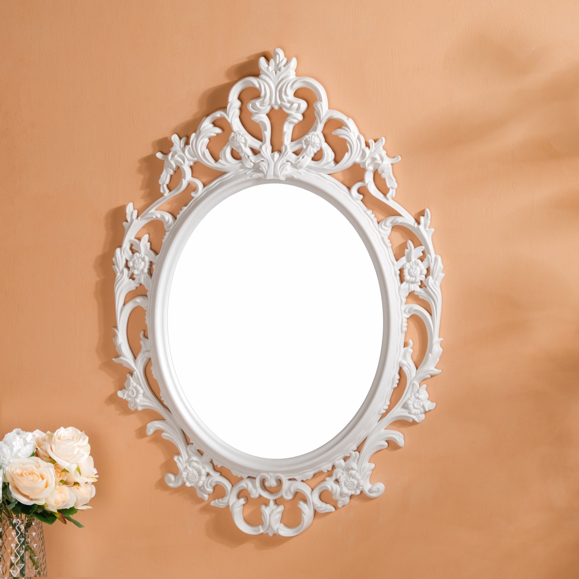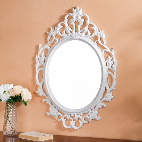 Introducing our extraordinary ornate wall mirror, the epitome of elegance and sophistication for discerning homeowners. Crafted with meticulous attention to detail, this masterpiece transcends the boundaries of mere functionality to become a work of art. Adorned with a vintage-inspired white frame, its ornate design exudes opulence and refinement, effortlessly enhancing any room it graces. With its wall-mounted installation, this decorative mirror becomes a statement piece, instantly elevating the aesthetics of your living space. Its versatility extends beyond being a vanity mirror; it is a symbol of impeccable taste and an embodiment of timeless beauty.