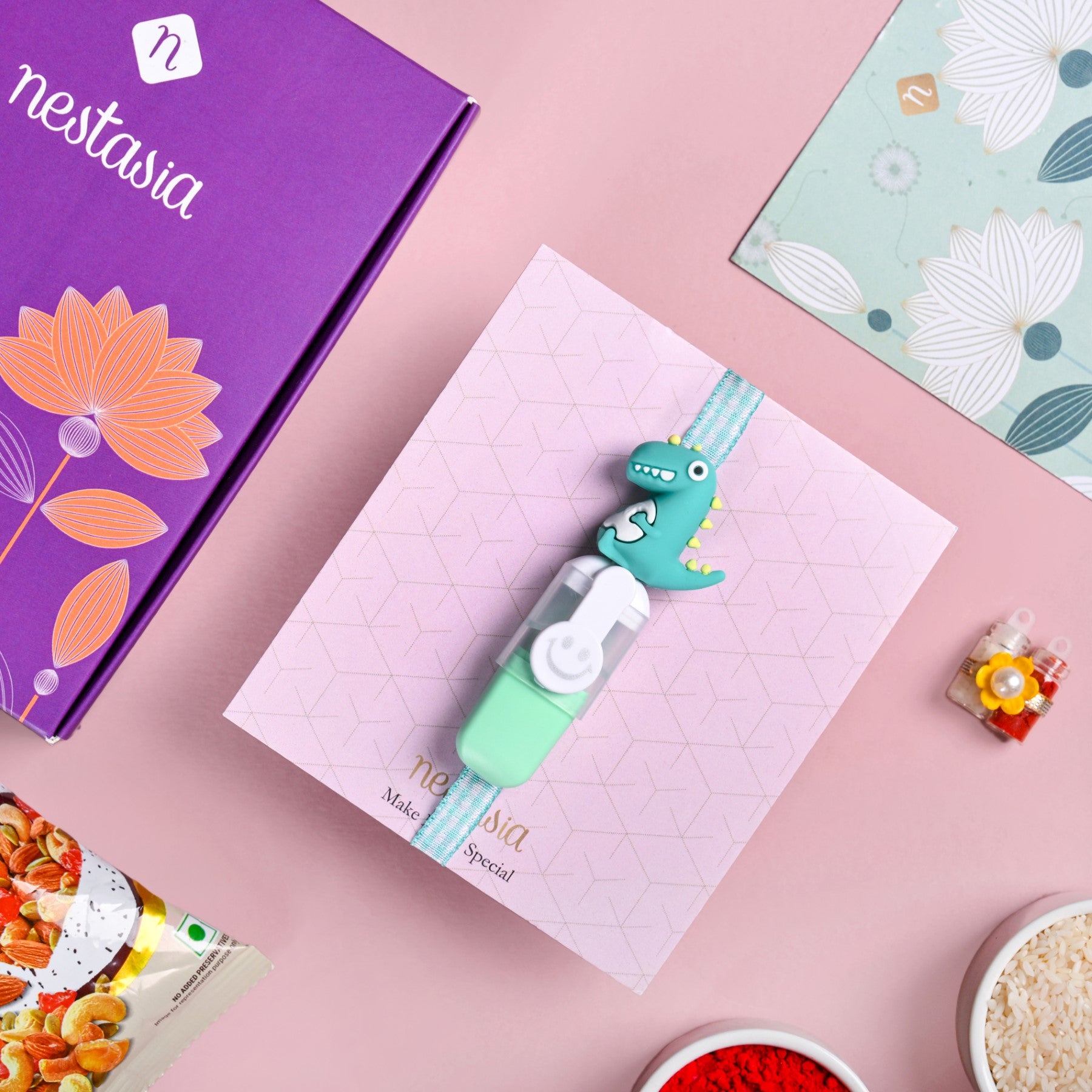 Add a little dino-mite charm to your little one’s day with this adorable rakhi.