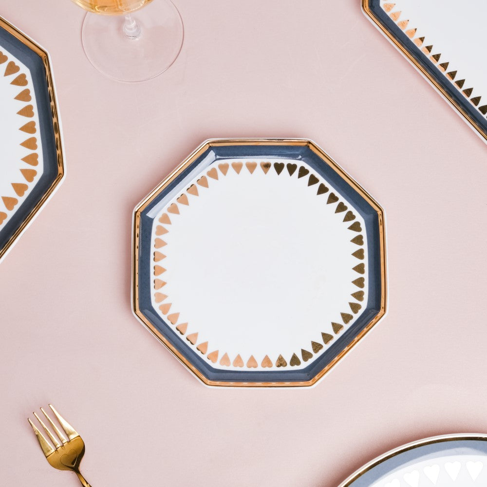 The way to one’s heart is undoubtedly through a delectable spread. Food is bound to warm up your heart, and when it’s served on the heart dinner set, be careful! The hearts of the guests are just going to melt. With these 6 hearts in your deck- 6 dinner plates, 6 snack plates, 2 large serving bowls, 1 long plate, 1 appetizer serving plate, and 6 appetizer plates, you’re destined to ace the table decor game.