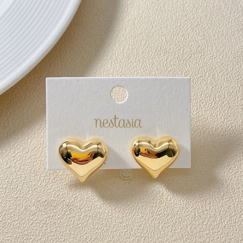 Nestyle: Pair these gold heart studs with a soft, neutral-toned blouse for a chic contrast, letting the warm gold pop while keeping your look effortlessly elegant.
