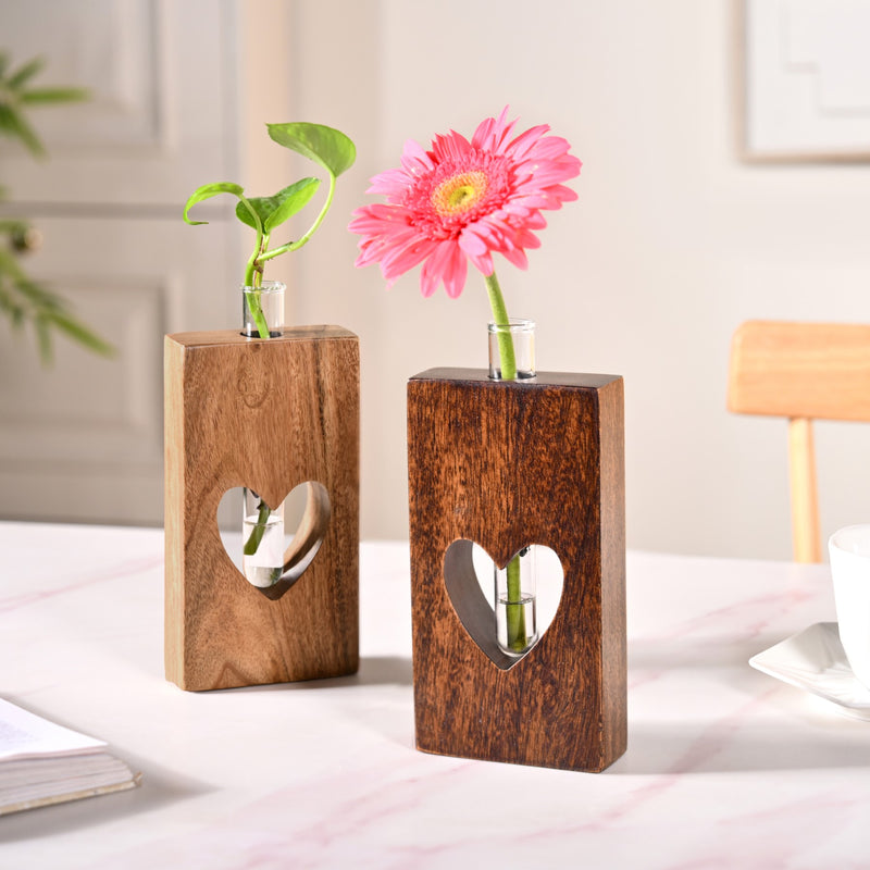 Benefits: Perfect for desks, shelves, or side tables, this plant holder offers a sweet way to add greenery to small spaces. The detachable glass test tube is easy to clean and refill, making it ideal for water propagation or displaying petite blooms. Acacia wood is known for its strength and moisture-resistant properties, ensuring durability and long-term use indoors. It has a flat base and makes sure that the holder stands firm. The heart-shaped design adds an emotional, giftable quality, making it perfect for occasions like anniversaries, housewarmings, or simply brightening up your own space with a personal, nature-inspired accent.