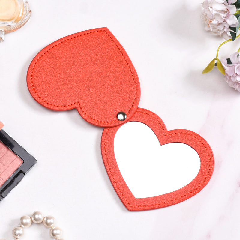 What do mirrors and love have in common? Both reflect the beauty that's within! Say hello to our latest obsession - the red heart-shaped pocket mirror! Crafted from luxurious PU leather, this compact mirror is both durable and eco-friendly. But let's talk about what makes this mini mirror as chic as it is practical. With a vibrant red hue that is absolutely, lip-smackingly gorgeous, this mini mirror adds a touch of passion to your everyday routine. And let's not forget about the shape. The heart-shaped design is as practical as it is adorable, fitting snugly into any purse or pocket for on-the-go touch-ups with effortless flair. Whether perfecting your lipstick or making sure your look is flawless, this mirror reflects your impeccable taste wherever you go. Now that you know. there's only one thing left to do. Add this to your cart and hit that checkout button.