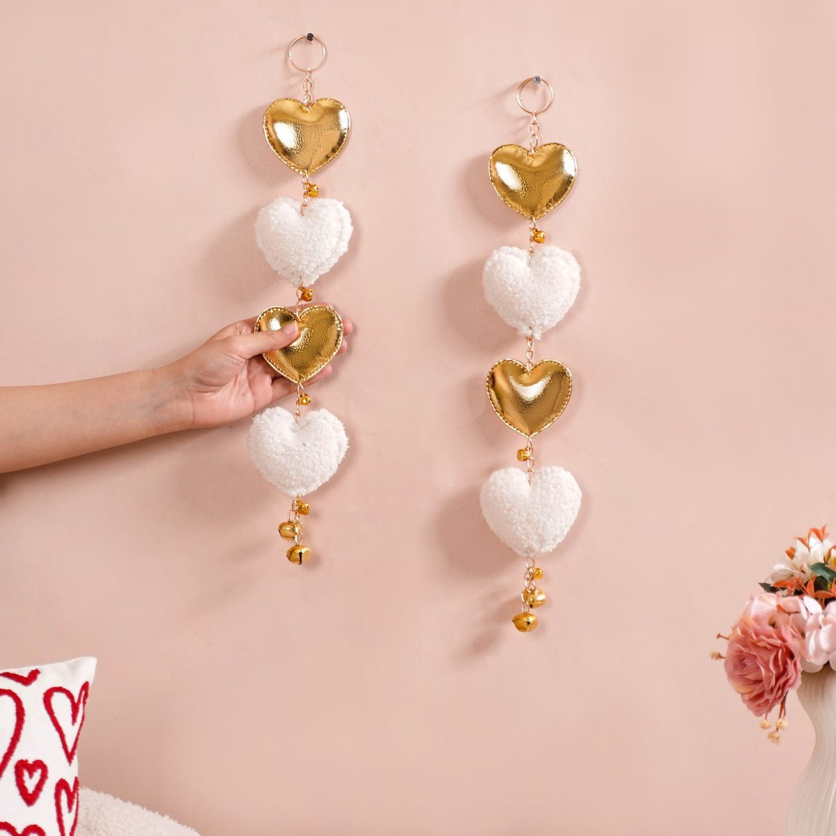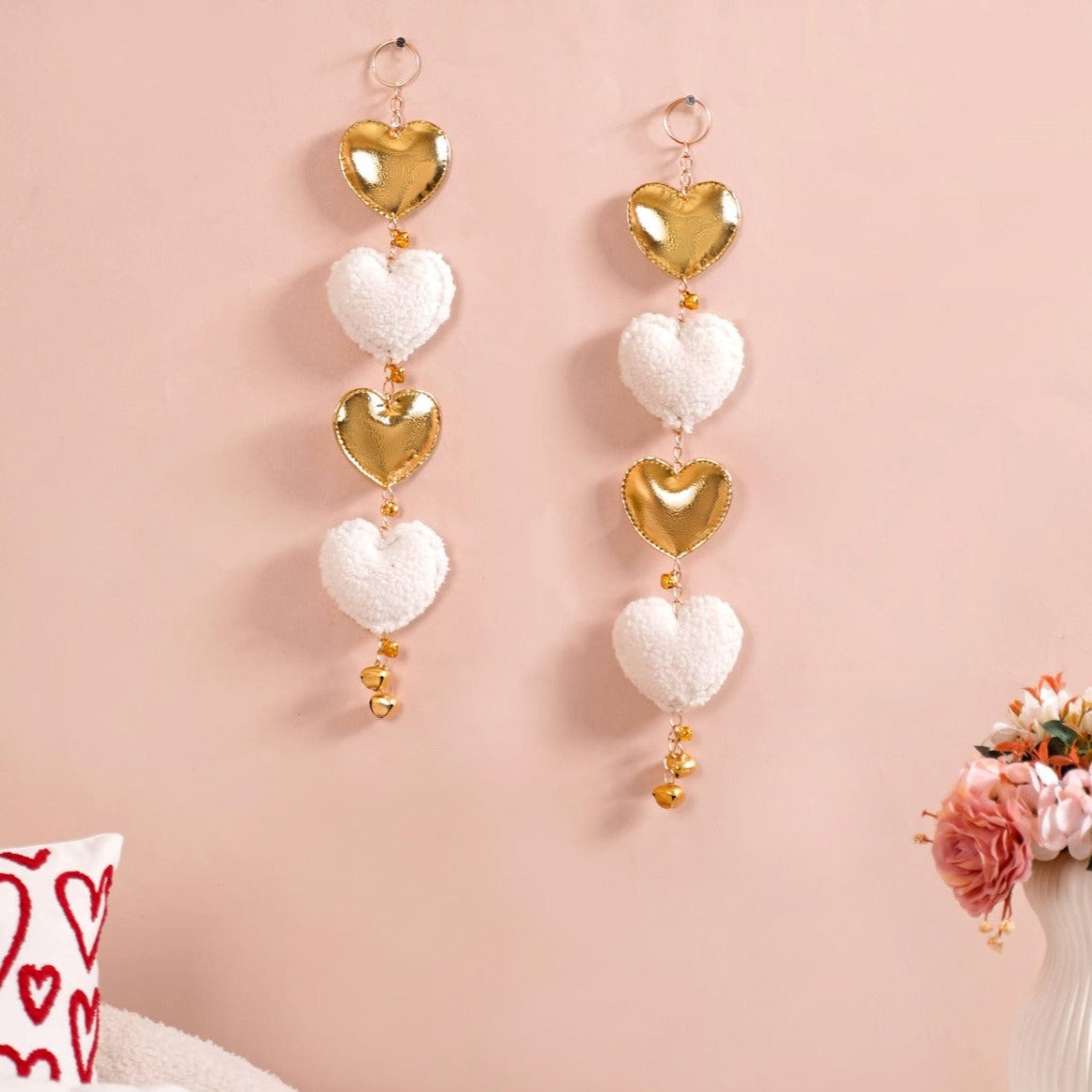 Transform your living space into a romantic sanctuary with our beautiful Valentine's wall hanging. The wall hangings are a blend of premium craftsmanship and timeless elegance. Made with premium quality plushy Sherpa teddy fabric, the wall-hanging set boasts a visually luxurious appeal. The wall hanging is lightweight, making it easy to carry and hang anywhere. The centrepiece of these hangings is the heart-shaped design crafted from soft fleece, invoking a sense of warmth and affection. The wall decor is ideal for gifting too.