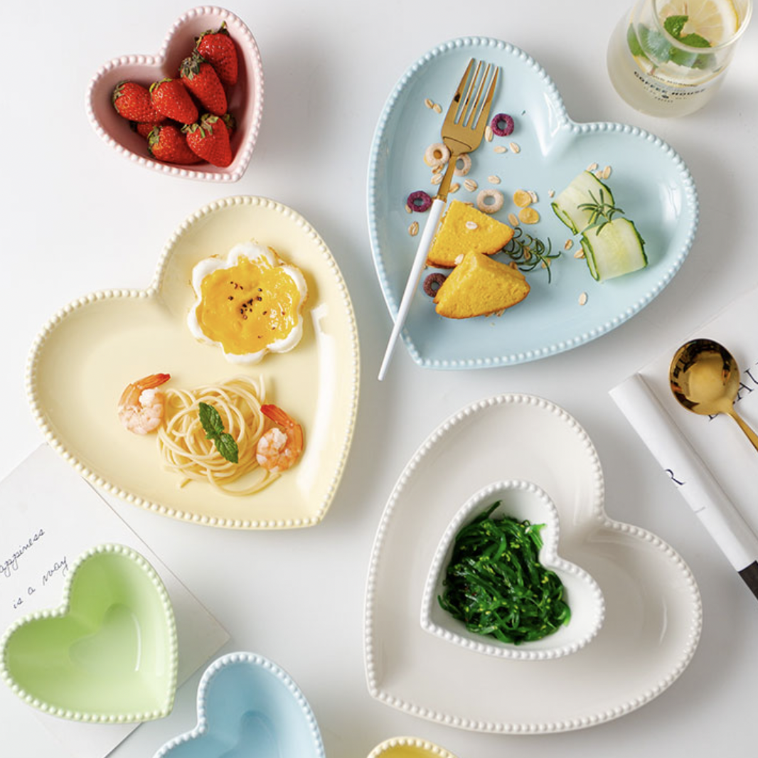 Nestip: Pair the heart-shaped plate with heart-shaped bowls as a gift to your significant other
