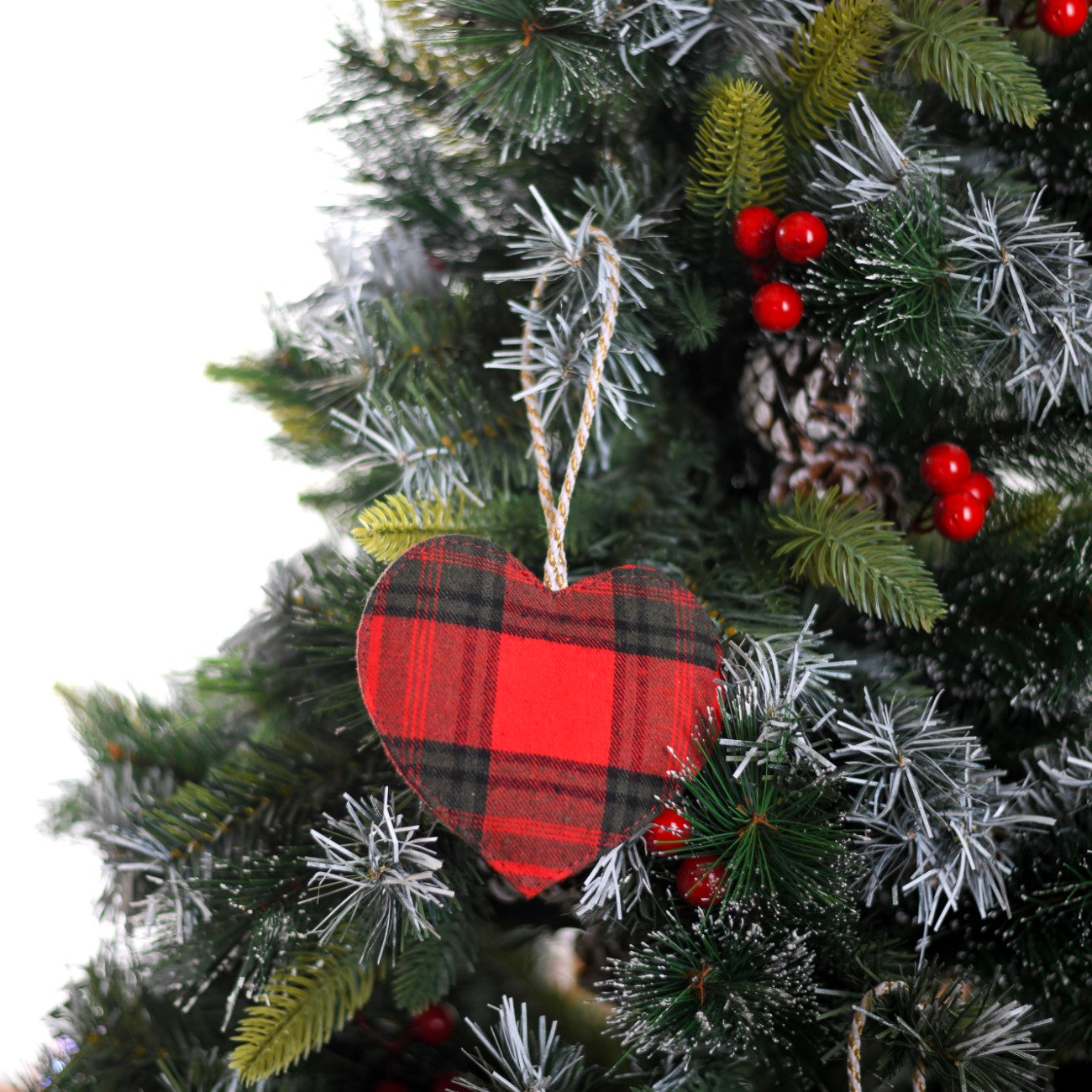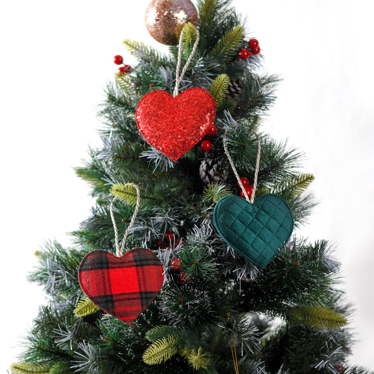 The Christmas wall hanging set boasts handcrafted designs in red and green plaid fabric, quilted green velvet, and shimmering red sequins. Each piece features a durable foam inner lining, ensuring longevity while exuding festive charm in every stitch.
