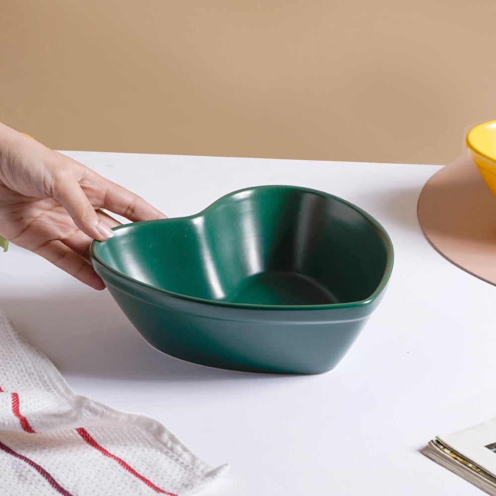 The ceramic bakeware is the perfect complement to any kitchen because of its chic heart shape and dark green colour, which blends nicely with any cookware. The baking dish will instantly add charm to the table and is the ideal companion for both regular use and special occasions.