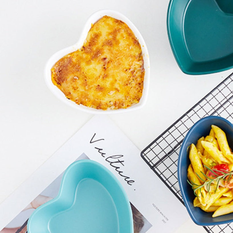 Nestip: Pair the heart bakeware with mini heart bowls from Nestasia's collection.