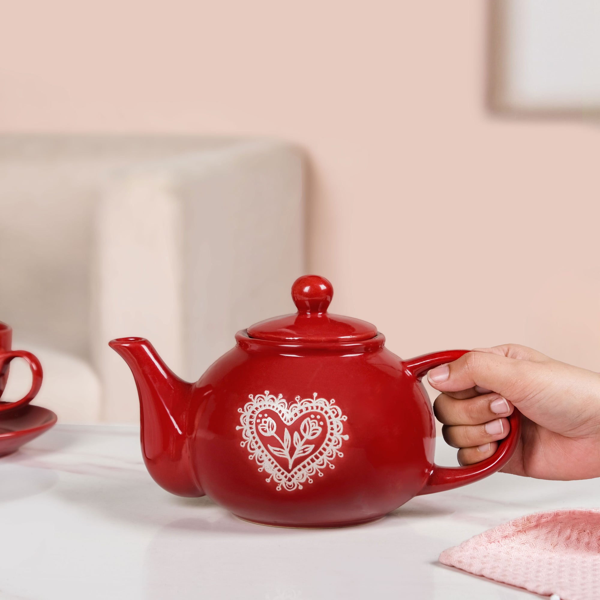 Design: Crafted from sturdy stoneware ceramic, the teapot feels reassuringly stable for daily use. The silk-printed heart motif sits crisp and neat on the surface, adding a hint of charm without trying too hard. The rounded silhouette with a flat base settles securely on the table, and the glazed finish makes the aesthetic blissfully simple. The charming motif adds a warm, handcrafted touch that fits perfectly into everyday tea rituals.