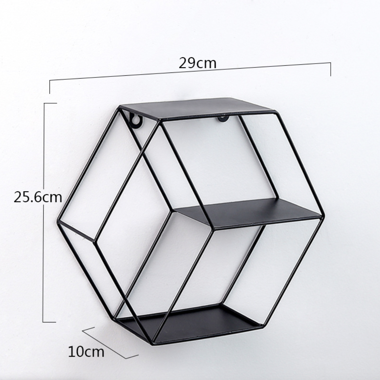 A hexagonal rack manufactured from sturdy metal that adds beauty to any room's decor. The practical shelf is available in a black colour that will complement any decor scheme. Enhance the room's beauty by placing magazines, pots, or decorative objects on the stable shelf.