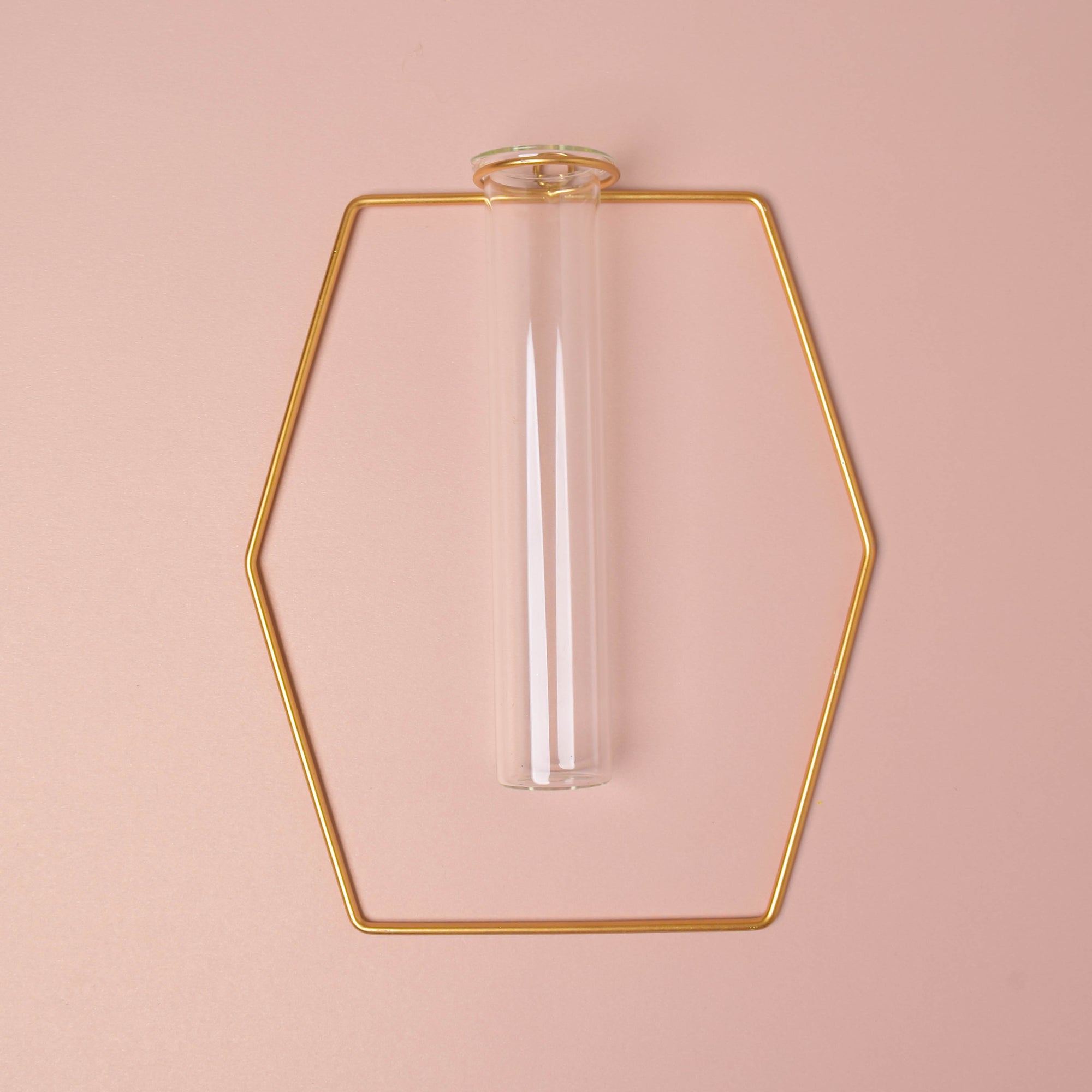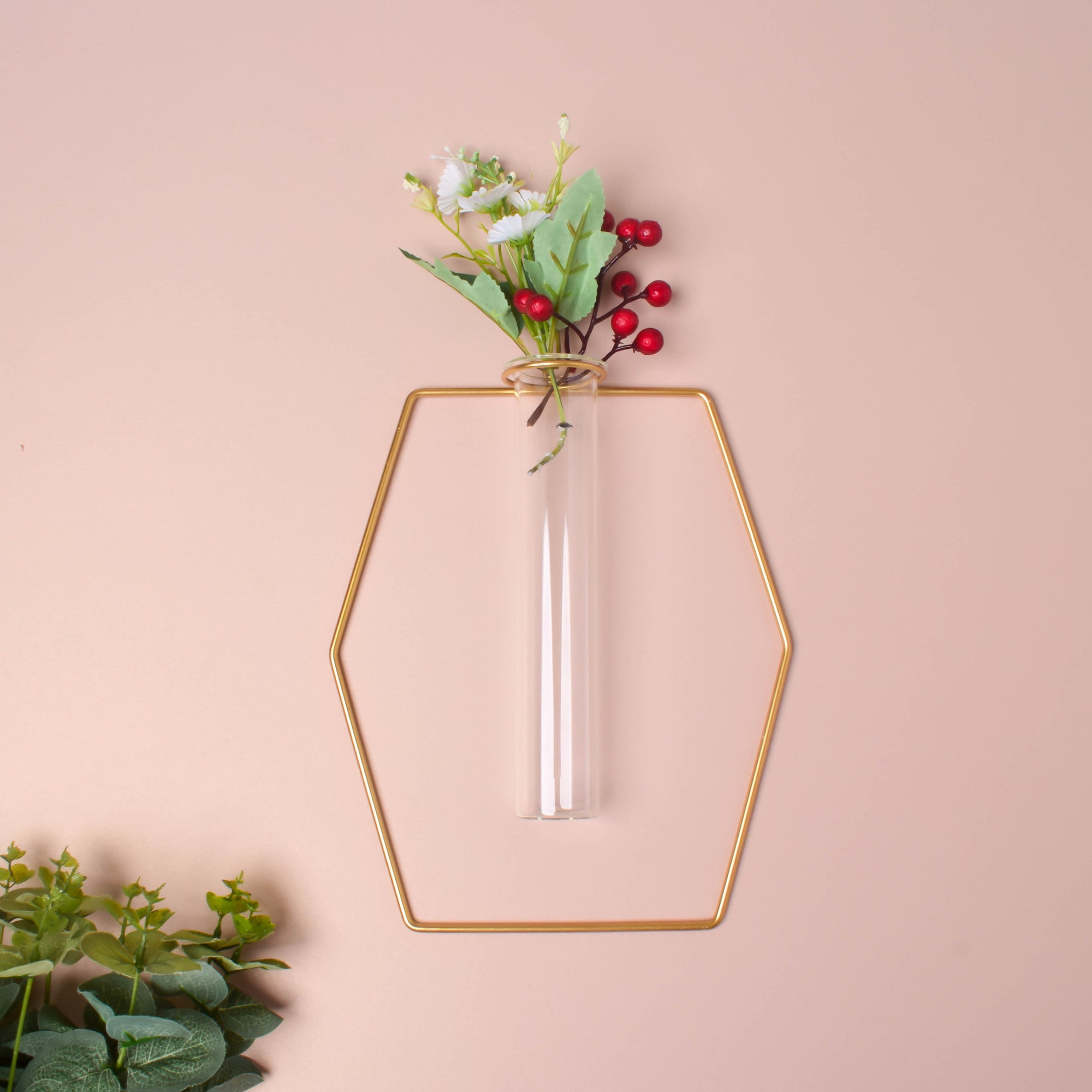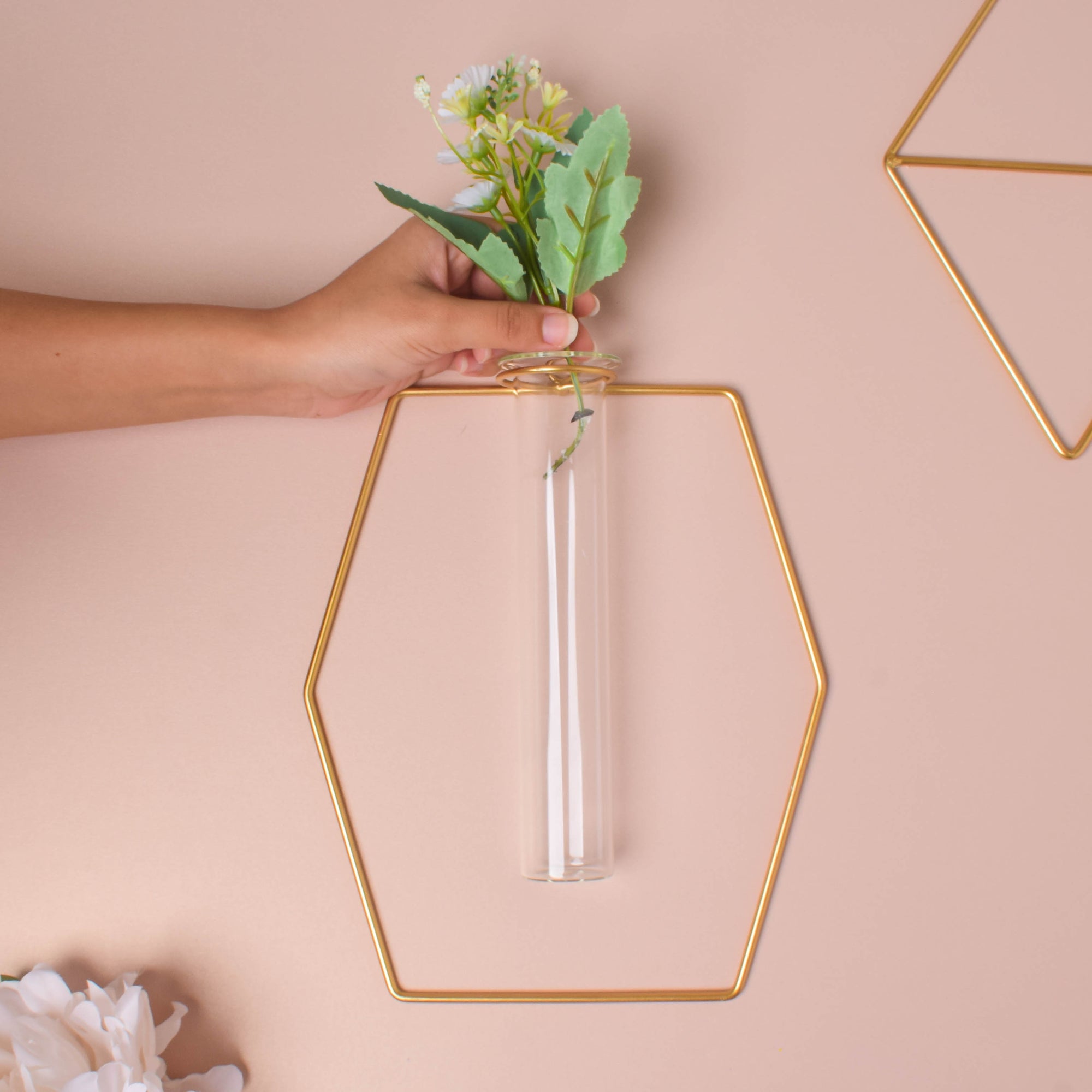 Wall-mounted test-tube vases look elegant and simple. It is attached to a hexagonal metal holder. These look creative and add greenery to any space. It is great for floral arrangements, home decoration as well as various gift ideas. It can be used to display cut flowers or for growing small living plants, or for propagating herbs in water.