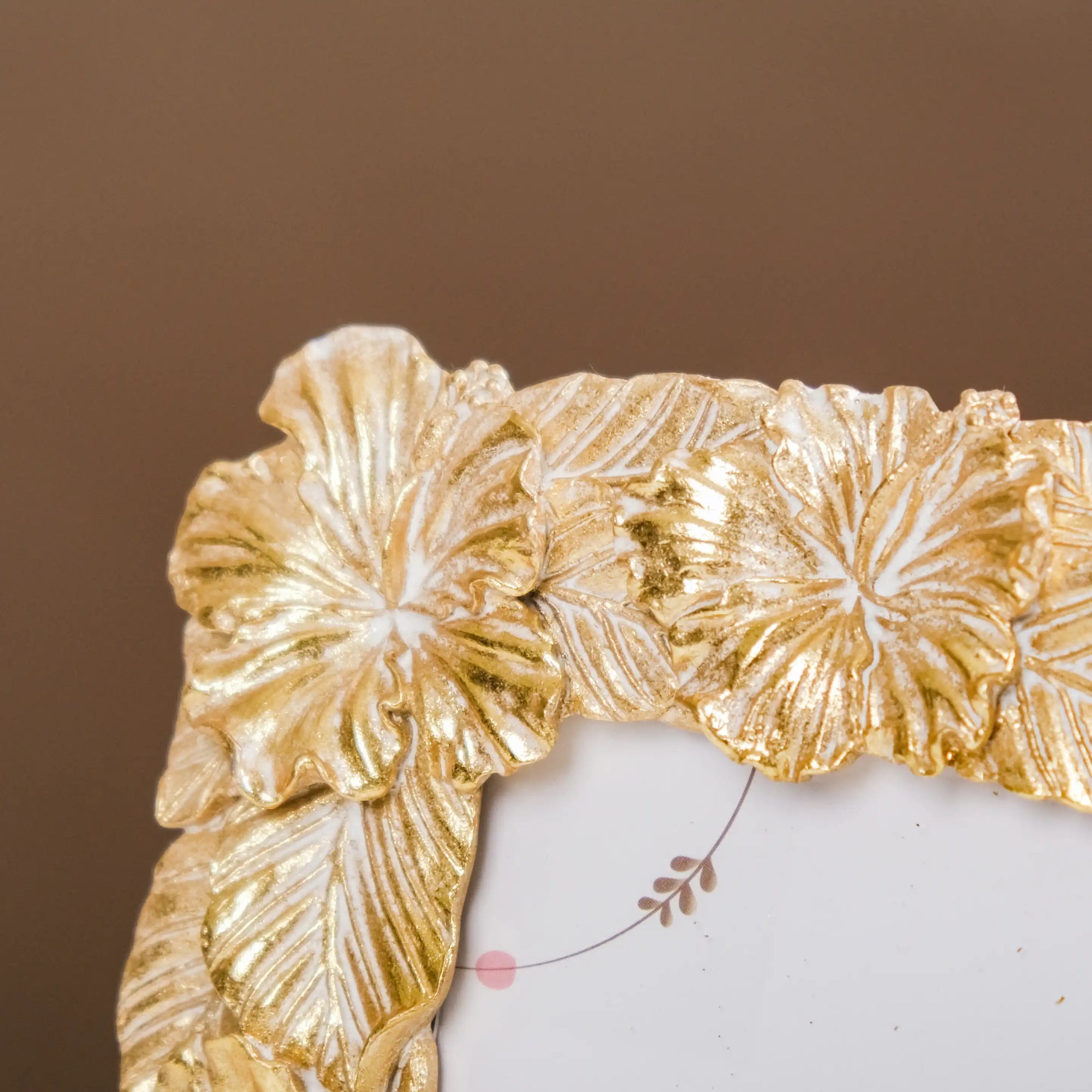 Indulge in the splendour of cherished moments through our expansive rectangular photo frame. Its opulent golden border, adorned with meticulously detailed hibiscus flowers, creates a captivating visual experience. Crafted from premium resin, this photo frame seamlessly blends artistry with practicality, preserving your cherished memories in a truly elegant manner. The intricate golden hibiscus blossoms, symbolizing love and prosperity, infuse a captivating charm into your treasured photographs. With its generous size, this frame commands attention as a captivating focal point.