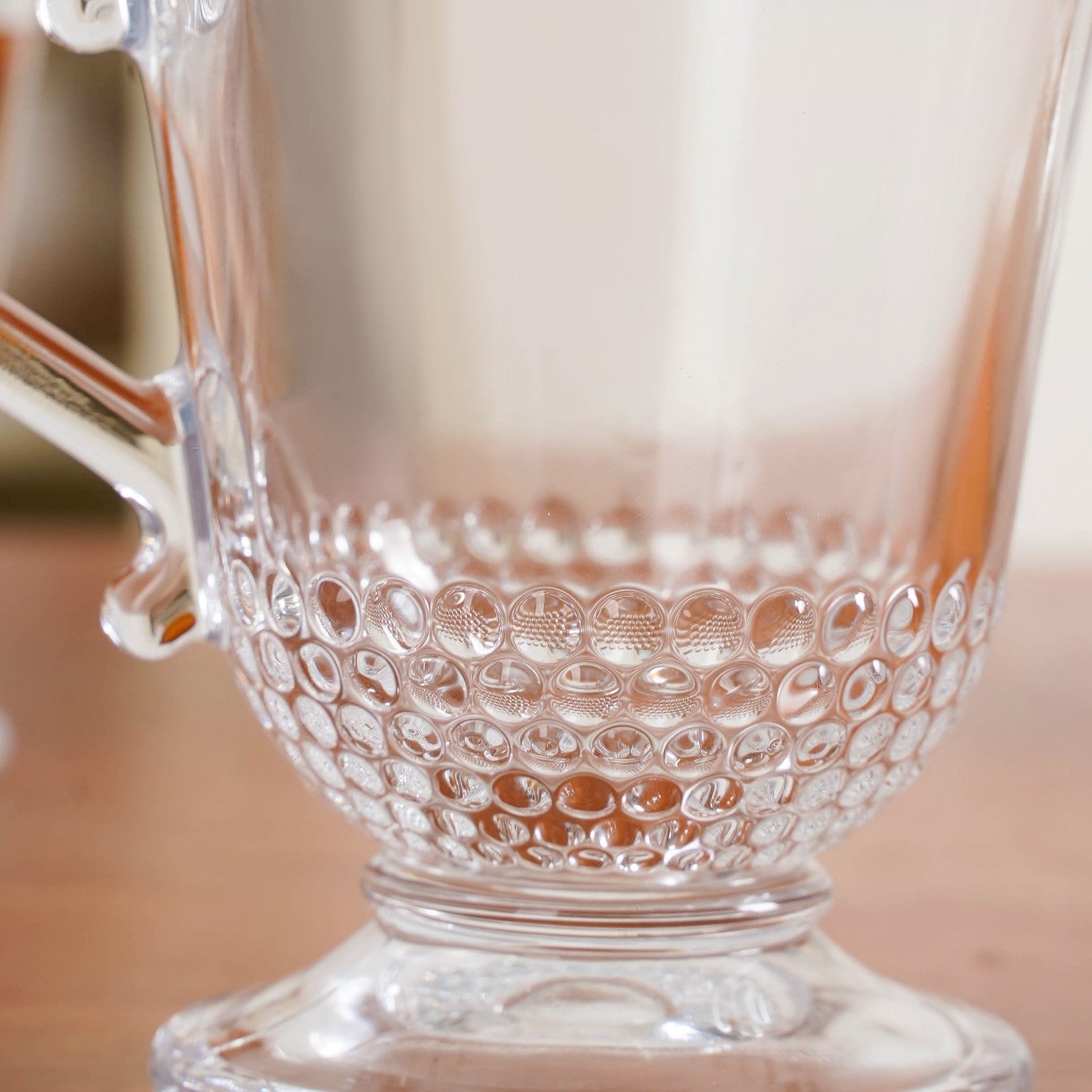 Benefits: Ideal for serving coffee, lattes, or cocktails, this set of 6 glasses blends elegance with practicality. The pedestal base ensures stability, while the ergonomic handles provide a comfortable grip. The hobnail design adds a stylish, tactile appeal, making them perfect for everyday use or for impressing guests. These glasses are easy to clean and turn simple sipping moments into memorable experiences.