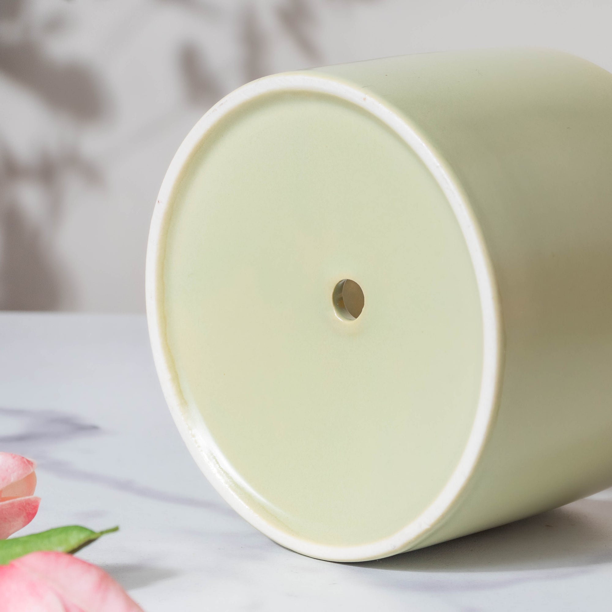 Home' is where the heart is and the pastel green planter is the perfect ornament for a home. The ceramic planter is adorned with a golden 'Home' and features golden metallic stands for the proper placement of the planter. Place the planter to decorate a corner or add colour to the workspace by planting one's floral plant of choice into the ceramic planter.