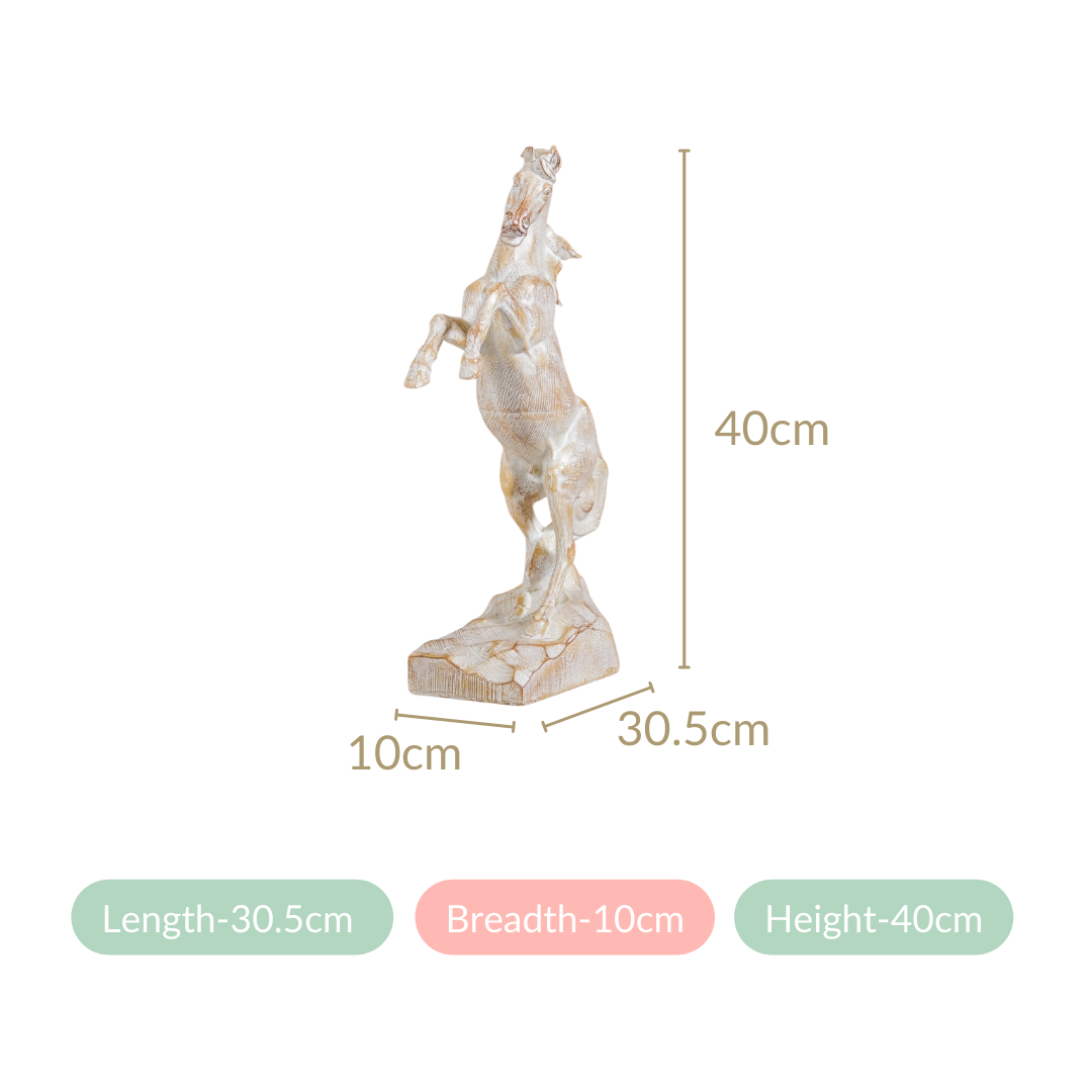 The dimensions on the horse showpiece is as follow: Lenght: 30.5cm, Breadth: 10cm, Height: 40cm