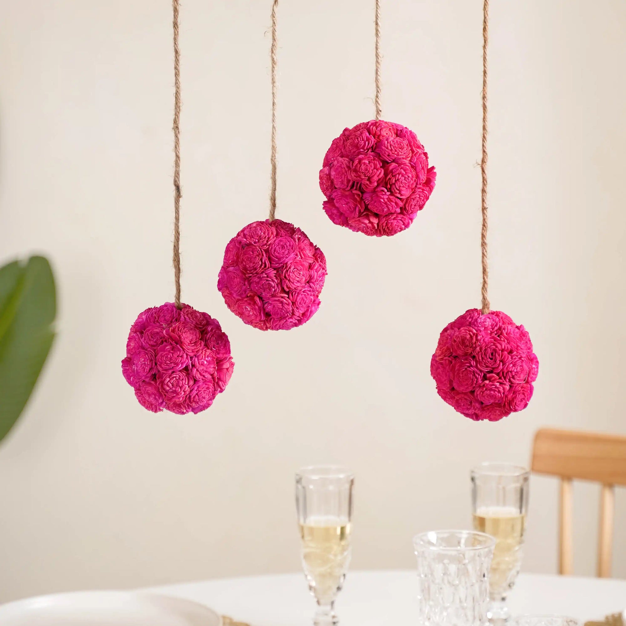 The floral ball hangings are indeed sustainable because they are made from eco-friendly shola material. This organic and eco-friendly material is not only visually appealing but also supports sustainable living principles.