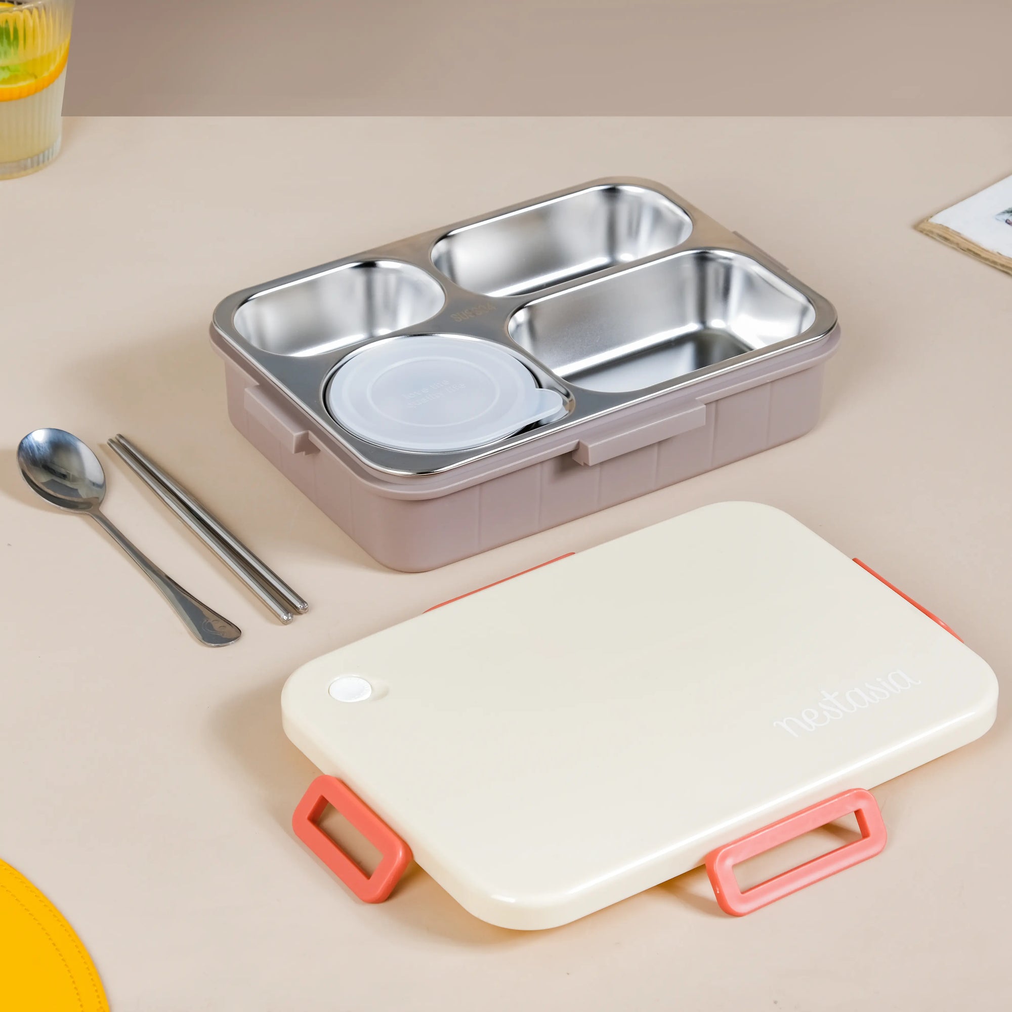 Absolutely! Crafted from 304-grade stainless steel that is the hallmark of industry-standard food safety and a non-toxic and BPA-free PVC lid, the lunch box is absolutely safe for food consumption. Get this bento lunch box online on Nestasia.