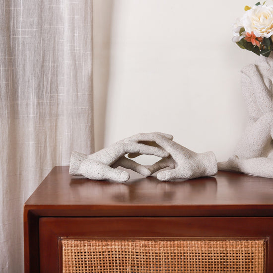 Presenting our stunning Intertwined Hands Sculpture, a showcase for superb craftsmanship. This magnificent showpiece is truly of high quality and painstakingly crafted to embody minute nuances that depict harmony and connection. It is the ideal focal point for any area of your home thanks to its distinctive design, which perfectly reflects the spirit of unity. It represents stylish home decor as well as the enduring beauty of intertwined hands—a potent symbol of love and unity—and is durable and simple to maintain.