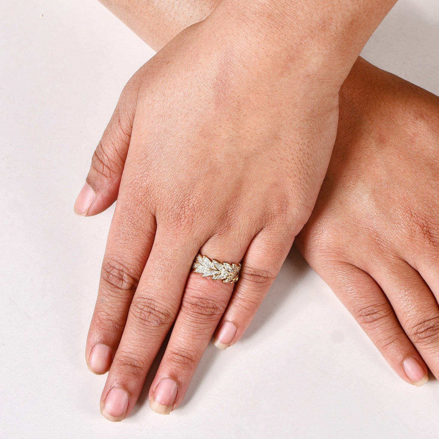 Nestyle: Combine this gold ring with a flowy, bohemian maxi dress in earthy tones. The ring's nature-inspired design will complement the dress’s relaxed vibe.