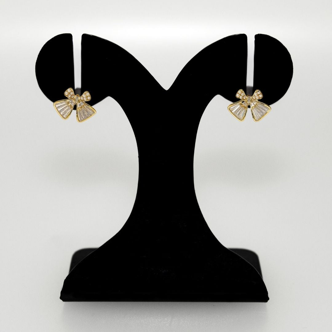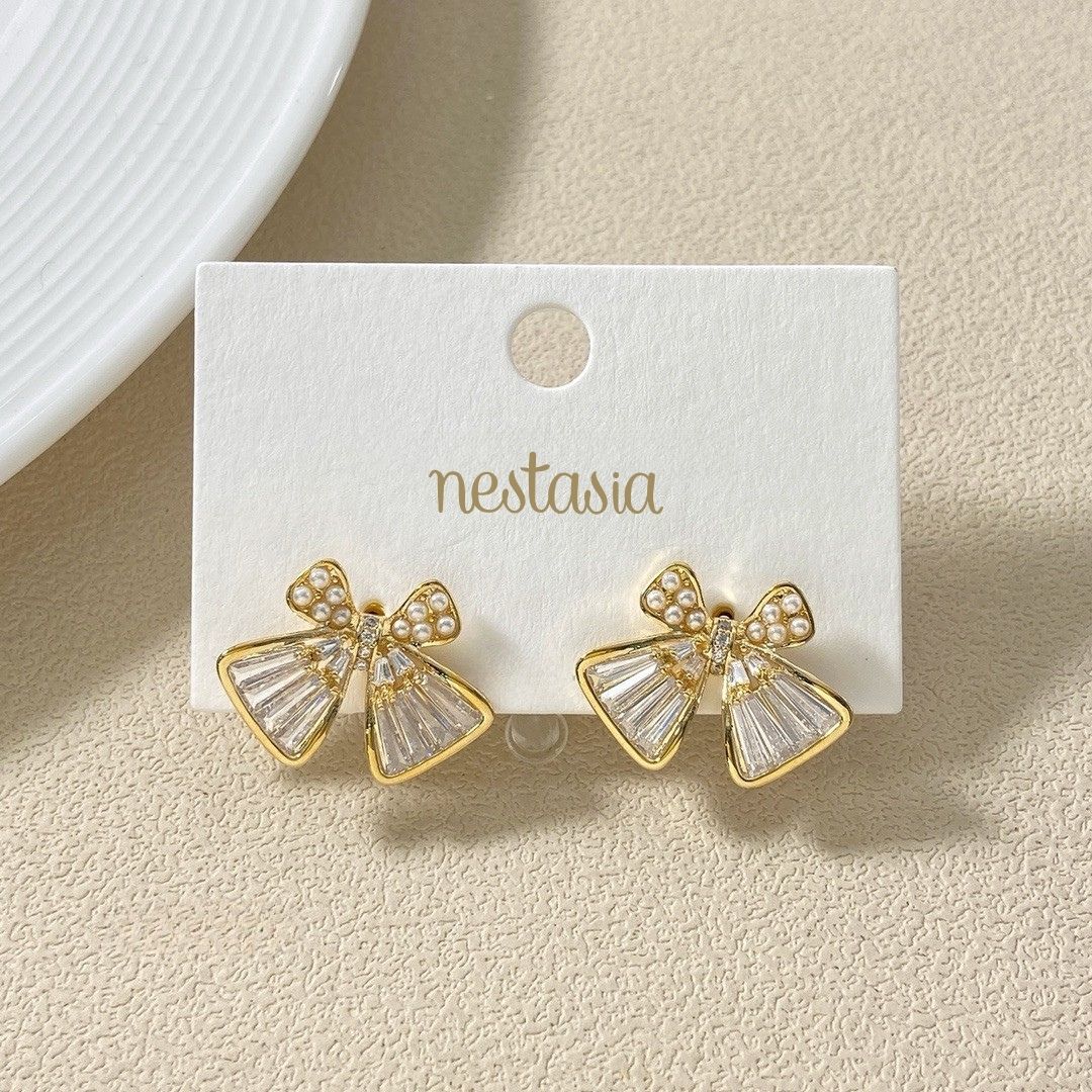 Effortlessly graceful with a hint of sparkle, these stud earrings are a timeless addition to any jewellery collection. Inspired by the delicate femininity and intricacies of the coquette aesthetic, these earrings blend vintage romance with modern elegance in a design that feels both playful and refined. The gold-toned frame lays the foundation for the studs iridescent faux pearl and cascading diamante accents, creating a mesmerizing shimmer.