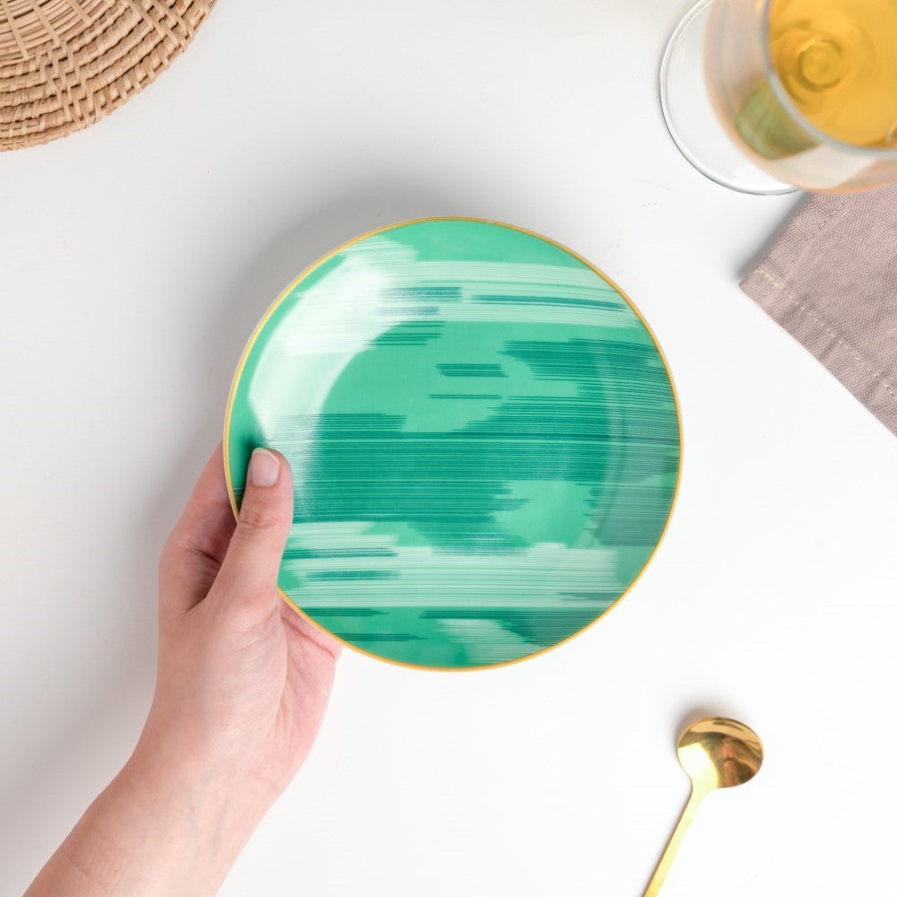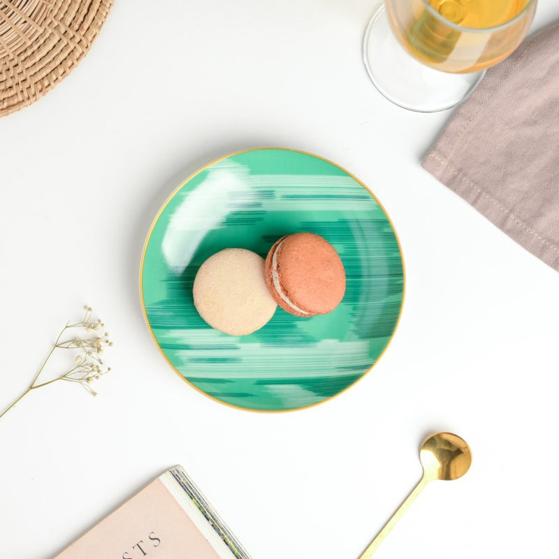 Handcrafted goods are the newest trend. So, installing handicrafts will surely elevate the dining room and the overall interior decor. In the long-running list of best ceramic handicrafts, the green dessert plate tops! The small plate has slightly raised sides, which won't let the hot sauce slip away from the brownie placed on the plate. Enjoy the sweet me-time with your hot and freshly baked brownie, and our green ceramic dessert plate.