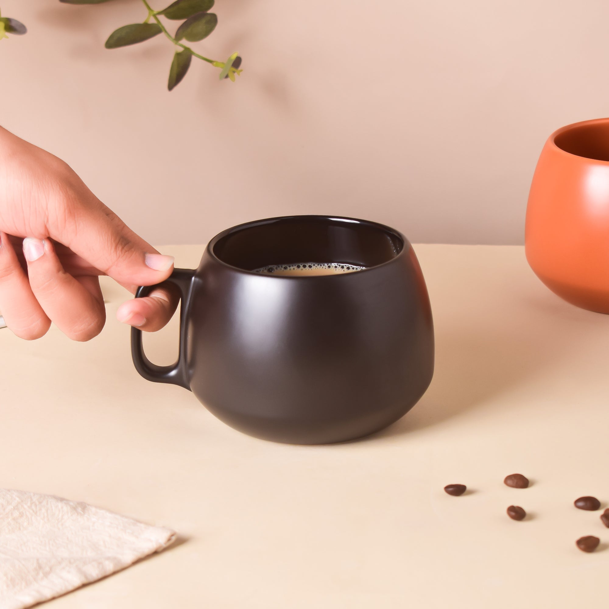The matt finish ceramic mug in black is ideal for hot or cold coffee, or flavored tea. The high-quality ceramic cup can give a touch of refinement to any table. Every evening, one can have a peaceful sip of one's favorite beverage to replenish the mood after a tiring day. Take a break after a long day with the exquisitely crafted luxury tea cup.