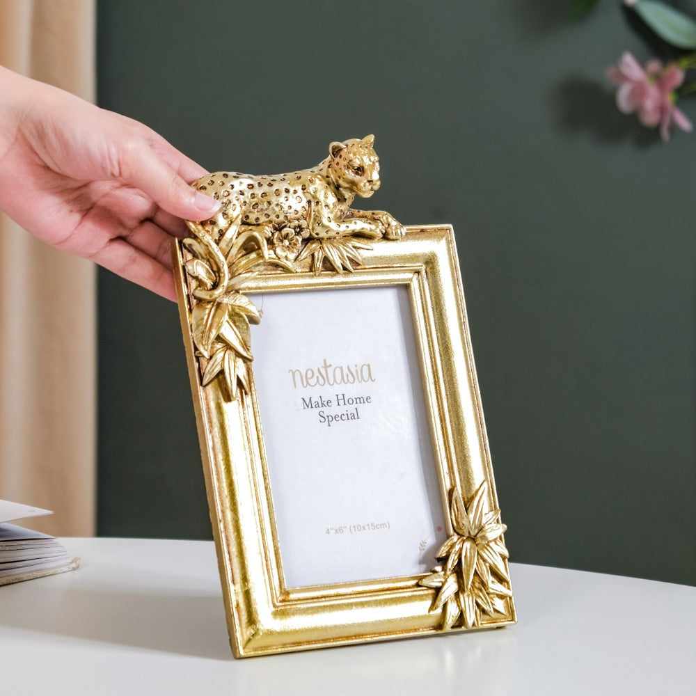 The captivating golden color and intricate detailing of the leopard photo frame make it fit for a variety of decor styles, be it glam or eclectic. Additionally, the metallic gold color of the frame infuses a sense of luxury and intrigue, which can create a captivating focal point when combined with modern and contemporary aesthetics.