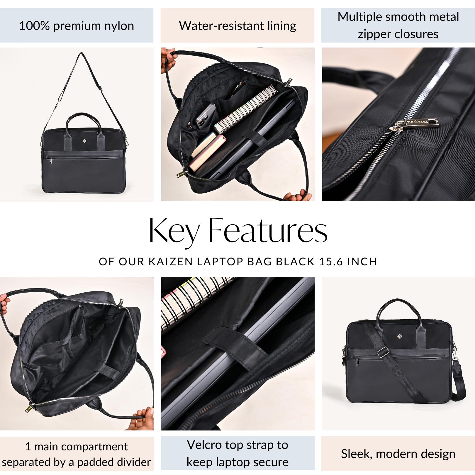 Inspiration: One thing that Japan is big on is the Kaizen philosophy of continuous improvement or innovation. And that's exactly what the Kaizen laptop bag captures. Inspired by this principle, we designed a bag that evolves with your needs, embodying a blend of sleek design and practical functionality. Just as Kaizen represents ongoing progress, the Kaizen is crafted to support your journey with style and efficiency, becoming your constant companion throughout your journey of personal and professional growth.