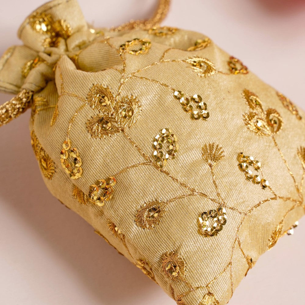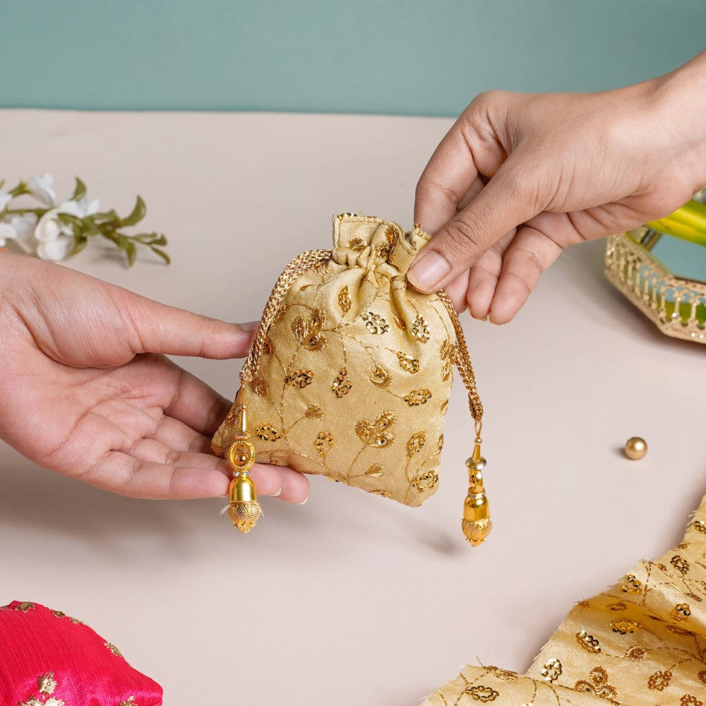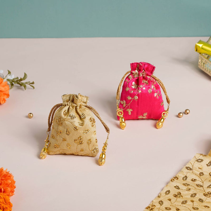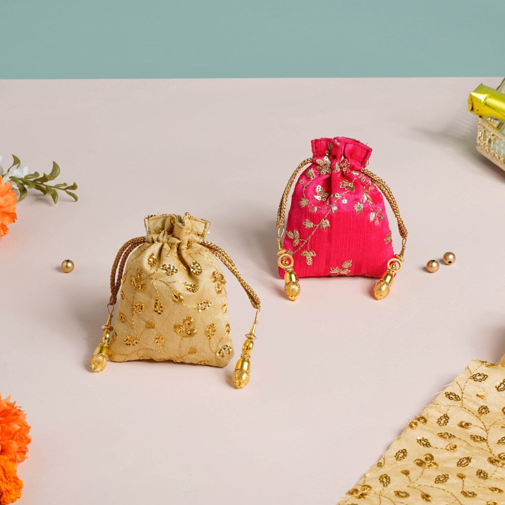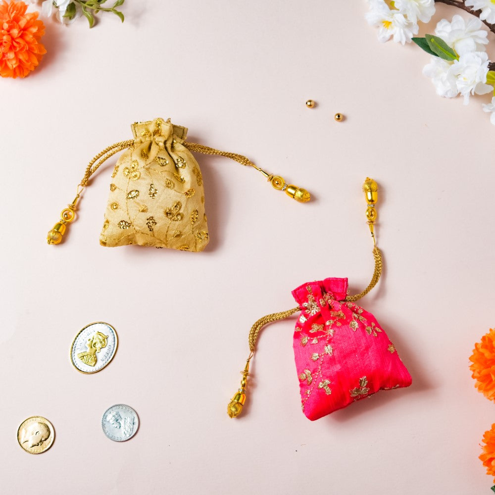 Kimaya Zari Floral Embroidered Shagun Potli Bag Set Of 2