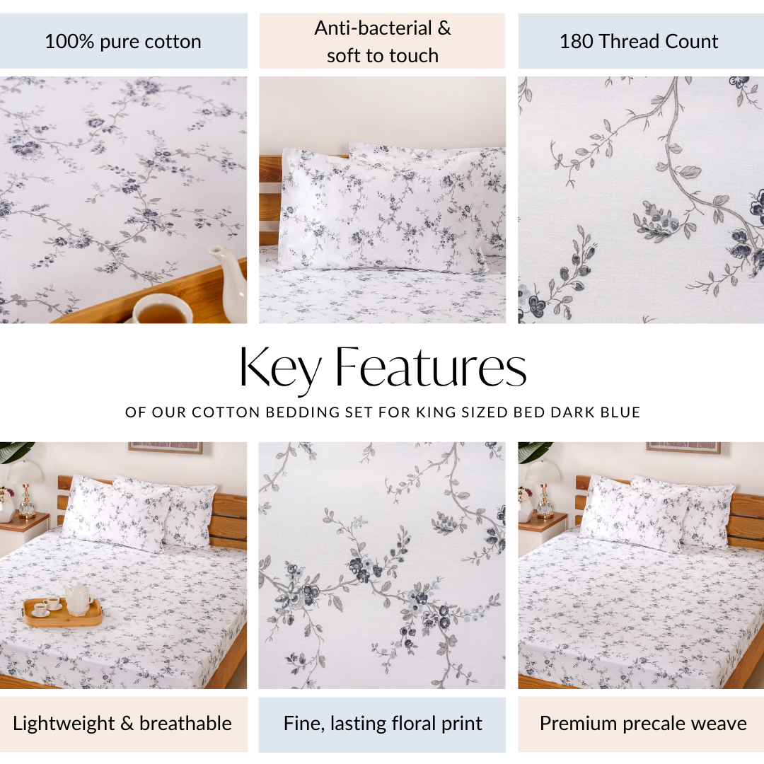 A cosy bed and the right bedding can make all the difference after a long day, and this cotton bedsheet set is just the thing you need to elevate your pace. With soft, breathable fabric and a timeless floral design, it’s an effortless blend of comfort and style.