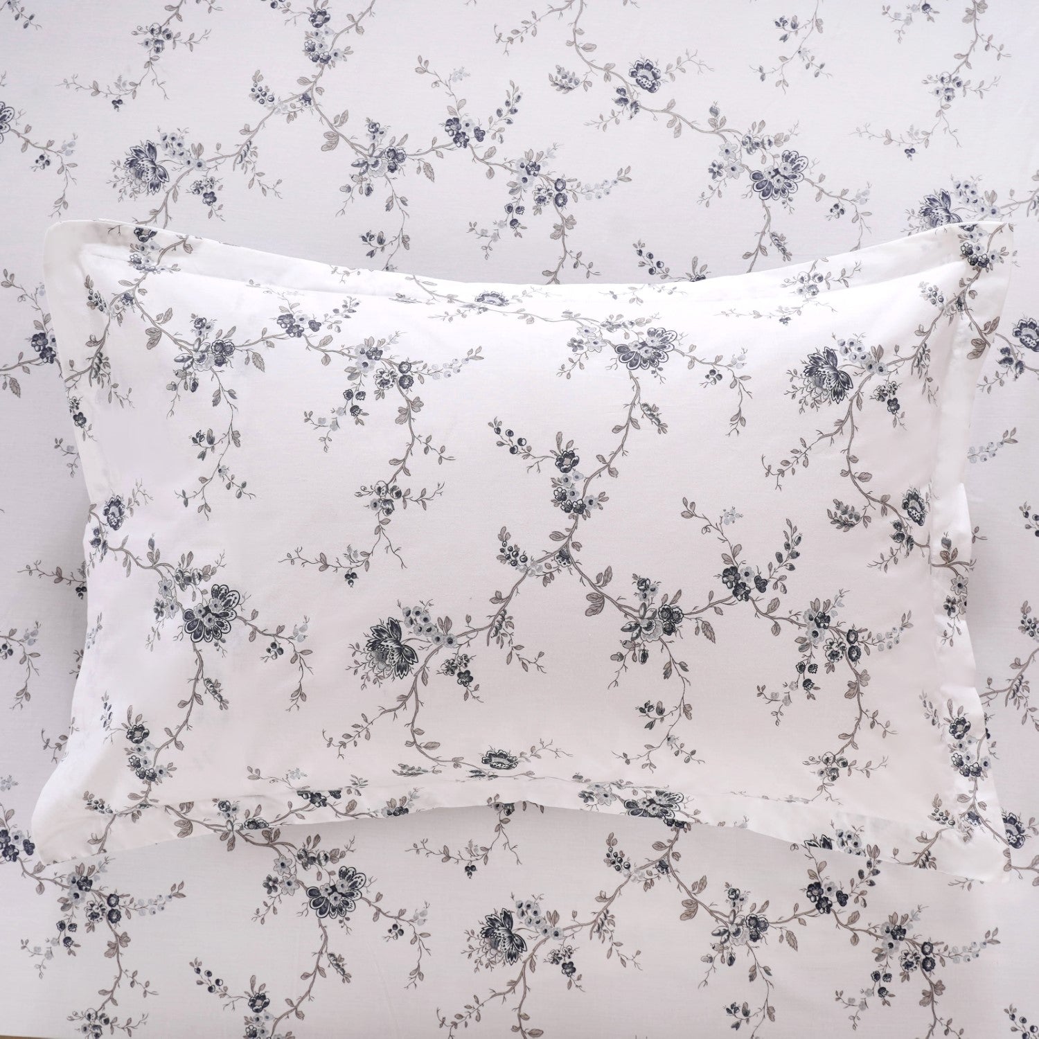 Design: Bold meets delicate with this printed bedsheet and pillowcase set. Featuring an intricate floral pattern in rich shades of dark blue that contrast beautifully against ashy taupe branches and subtle leaves, this bedding set brings a serene yet striking aesthetic to your bedroom. The deep blue hues add a sense of calm and sophistication, while the soft taupe accents provide a balanced, natural feel. Paired with two matching cotton pillowcases, this set is designed to create a cohesive, elegant look that enhances any style of décor.