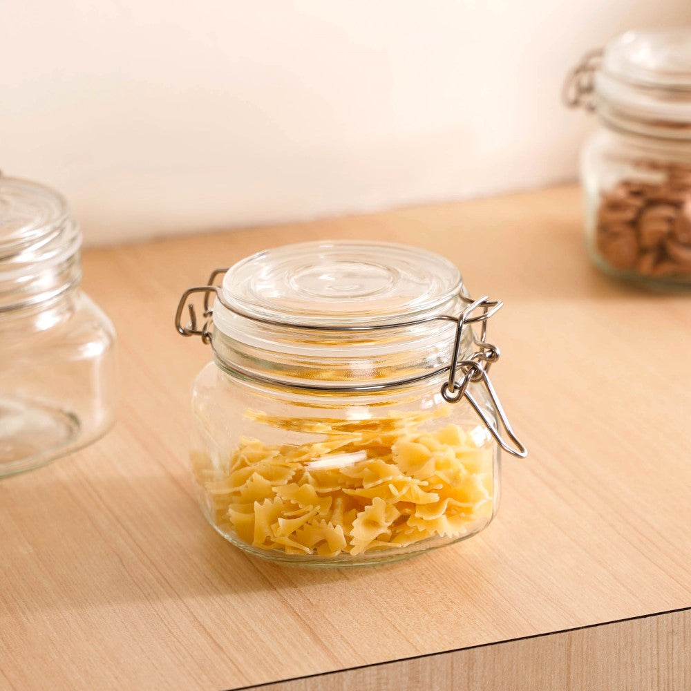 Uplift your kitchen organization with this set of four glass jars, featuring airtight flip lids equipped with reliable sealing gaskets and robust stainless steel metal clip locks. Crafted from high-quality, crystal-clear glass, these versatile containers not only enhance your storage but also preserve the freshness of your pantry staples, snacks, and more. With their airtight seals and elegant stainless steel clip lock lids, these jars offer both practicality and sophistication. Say goodbye to clutter and embrace a stylish, functional storage solution that transcends the kitchen. Whether it's grains, cookies, or crafting supplies, these glass jars combine form and function seamlessly.