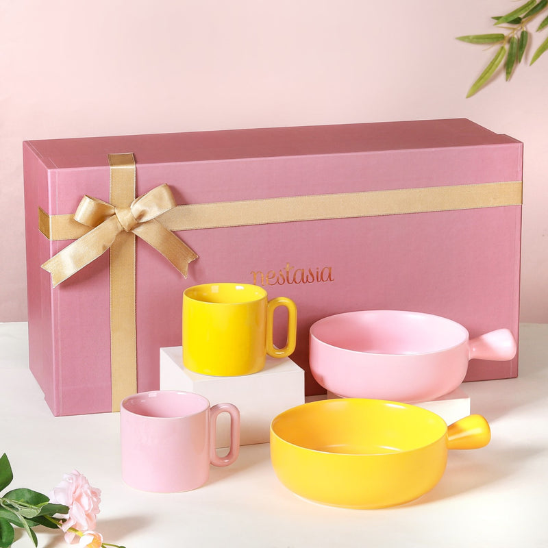 Yes, this Diwali gift hamper is designed to be universally appealing and suitable for individuals of all age groups. Its vibrant colours and versatile use make it a great choice for young adults, families, and seniors alike. Whether it's a young couple setting up their first home or grandparents enjoying a warm cup of tea, the ceramic baking bowls and mugs in this hamper cater to a wide range of tastes and preferences.