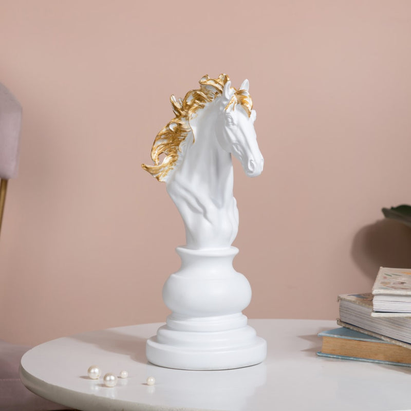 If you are a fan of the beauty and elegance of horses and the strategy and competition of chess, then our chess horse showpiece will be the perfect addition to your home decor collection. The horse chess piece decor will add an extra layer of beauty to your table decor. The knight figurine is expertly crafted and designed to capture the grace and majesty of these magnificent creatures. This showpiece for home decor is a stunning horse statue that will beautify your living room or bedroom.