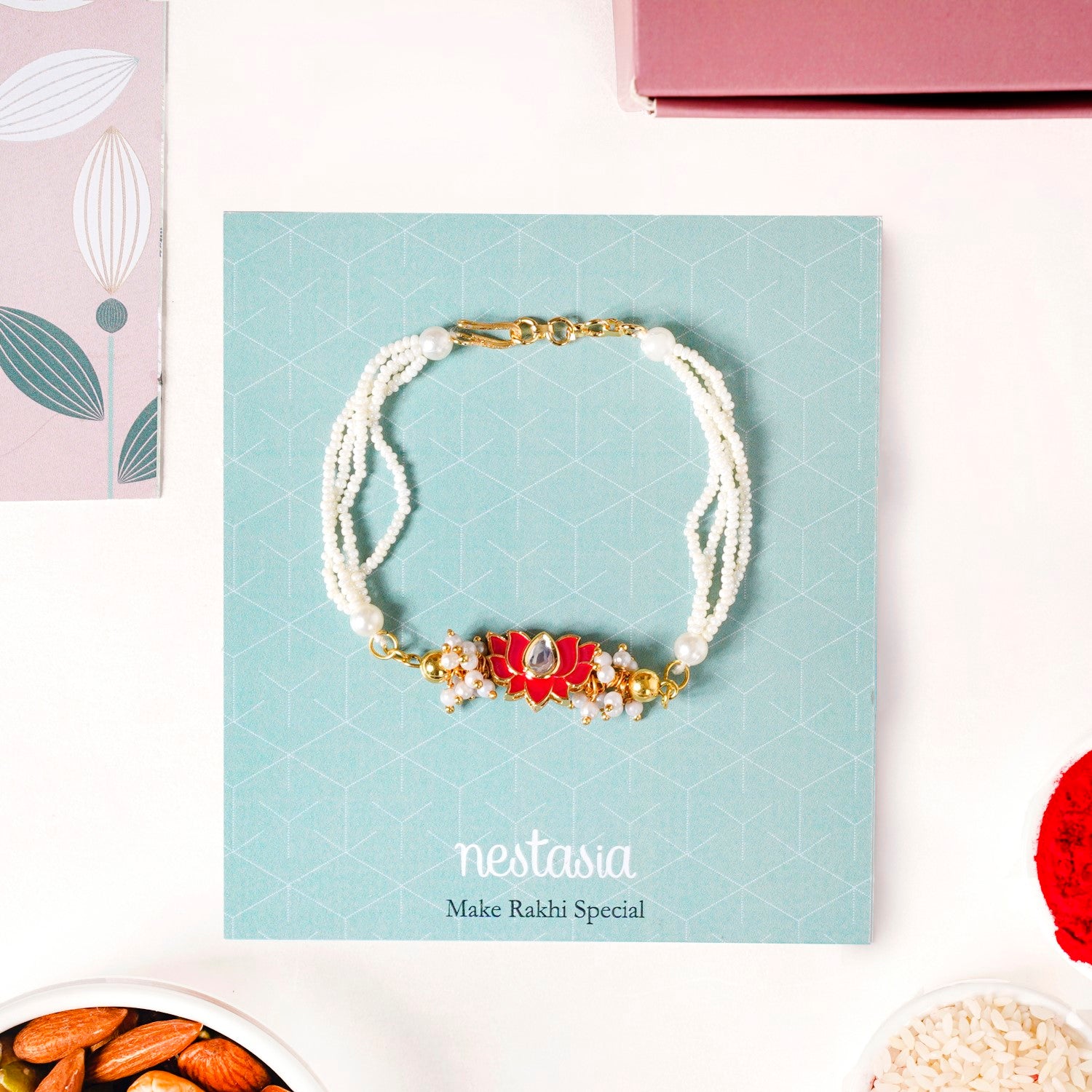 Kundan Lotus Rakhi Hamper For Couple