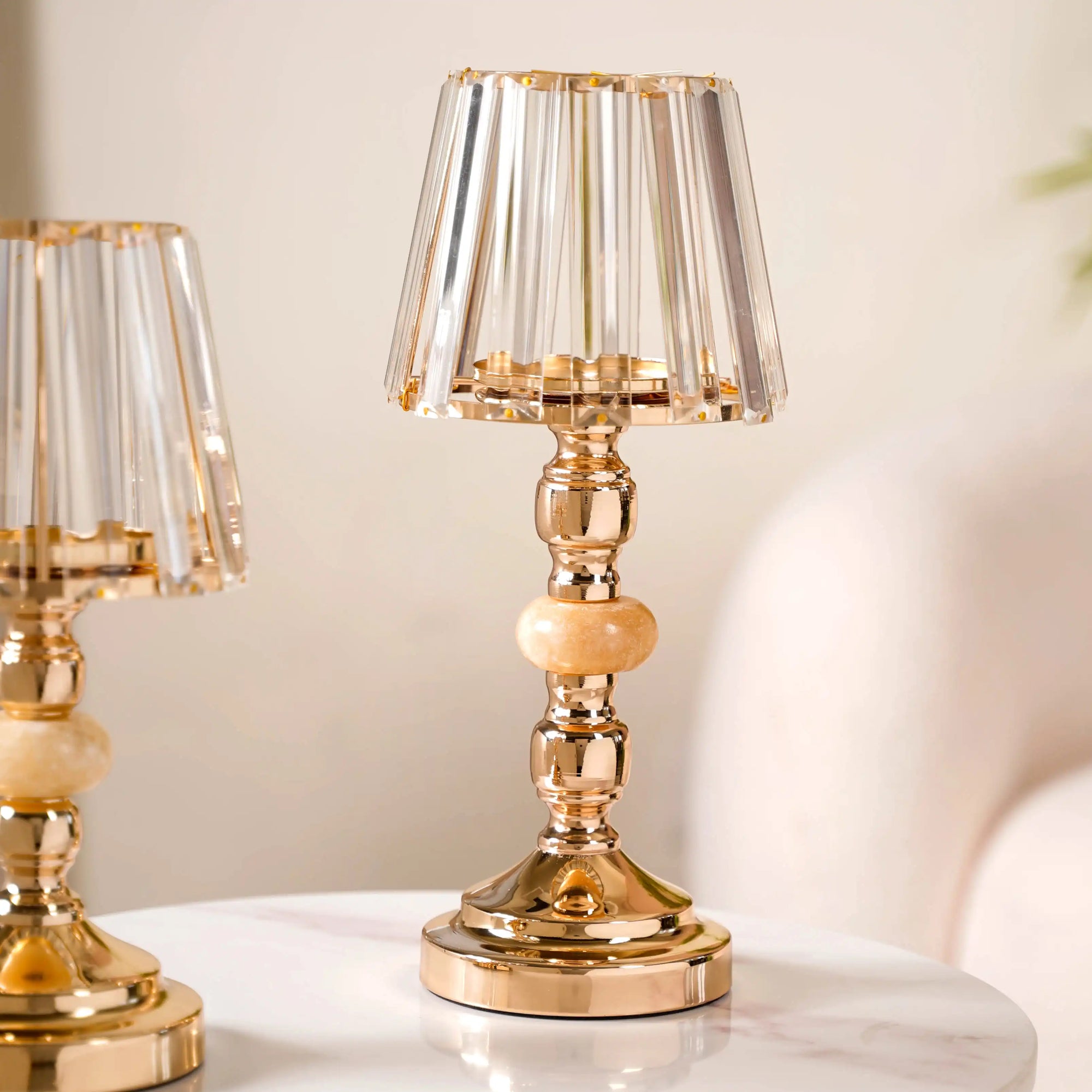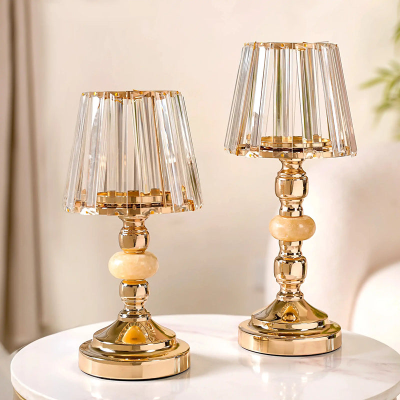Inspired by cathedrals and castles, these decorative glass candle holder stands combine premium luxury and a sense of bling to any room decor. Crafted with impeccable precision, the glasswork of this candle holder showcases a flawless fusion of form and function. Its glass body exudes a deep, radiant opulence that seems to capture and amplify the warm, flickering embrace of candlelight, casting a spellbinding dance of shadows and light.