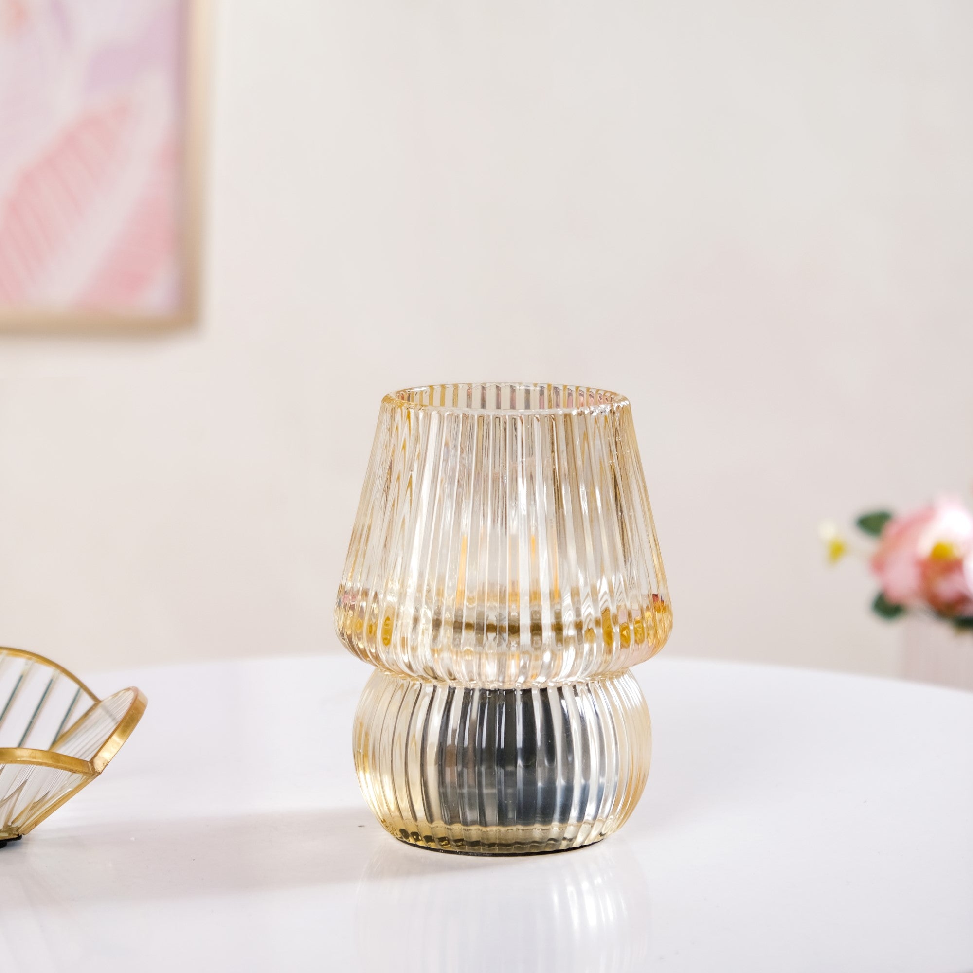 Benefits: The desk lamp's soda-lime glass is not only visually striking with its tinted yellow hue but also durable, ensuring long-lasting use. The LED light bulb, known for its efficiency, offers up to 24 hours of illumination while consuming minimal power. The ribbed texture of the glass enhances the overall aesthetic while diffusing light beautifully across your space.