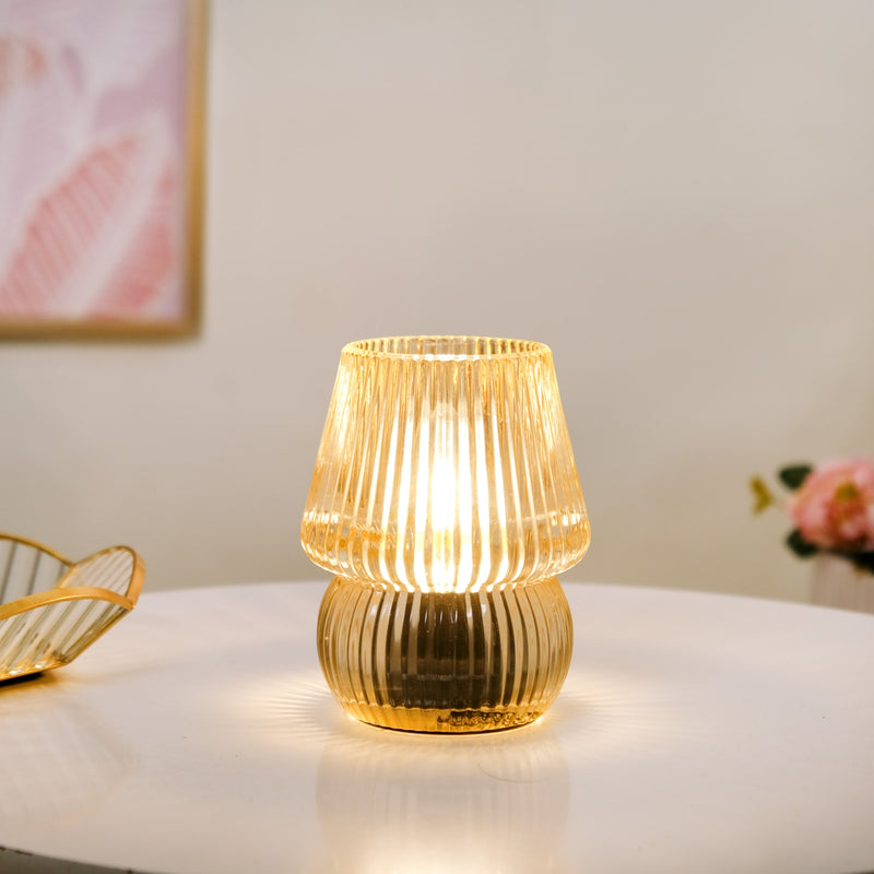 Lantern Style LED Glass Table Lamp Portable Battery Operated
