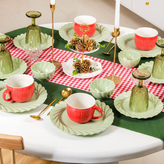 The ceramic dinner set has been with durability in mind, and its chip-resistant properties are a notable feature. The hand-glazed surface not only enhances the set's visual appeal but also serves a practical purpose. It acts as a protective layer for the ceramic material, making it more resilient against everyday wear and tear.