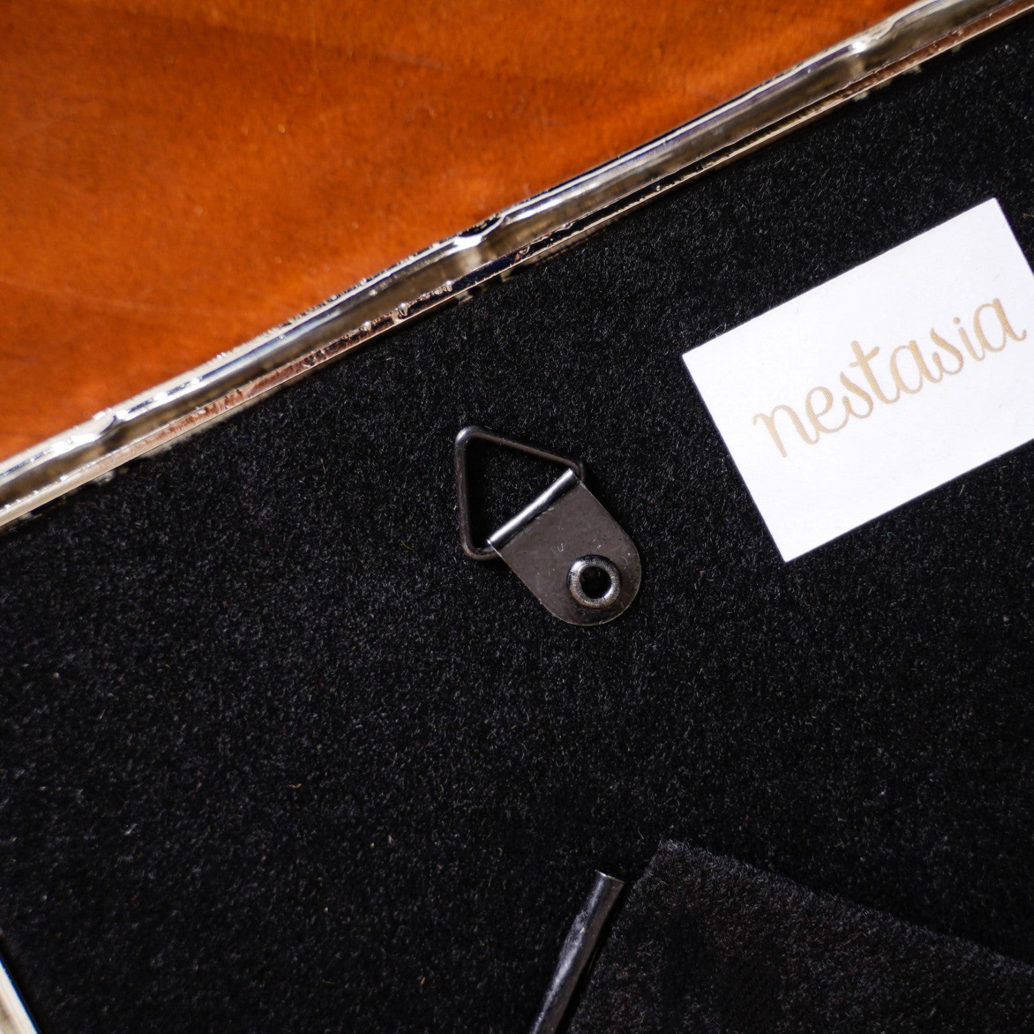 Benefits: Combining sophistication with functionality, this frame safeguards your photos while enhancing any space. Subtle silver bamboo accents lend a touch of refined luxury, complementing modern, classic, or minimalist décor. The durable acrylic cover protects against dust, while the velvet backing prevents scratches on the surface. With a sturdy satin-threaded stand and versatile hanging options, it can be displayed with ease anywhere.