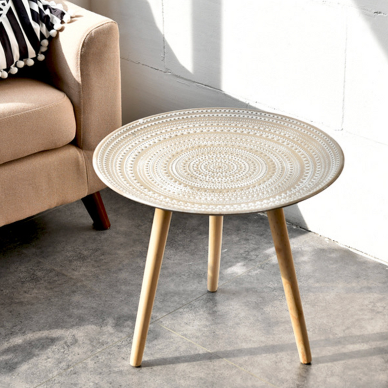 A contemporary vibe can be added to the living room with the grey corner table. The fibre table top with beautiful patterned embossings paired with the wooden legs of the table can be used in a boho decor setup. The wooden legs come with attached screws and can be easily screwed in without requiring any tools or equipment. It is available in 3 sizes and can be put together.